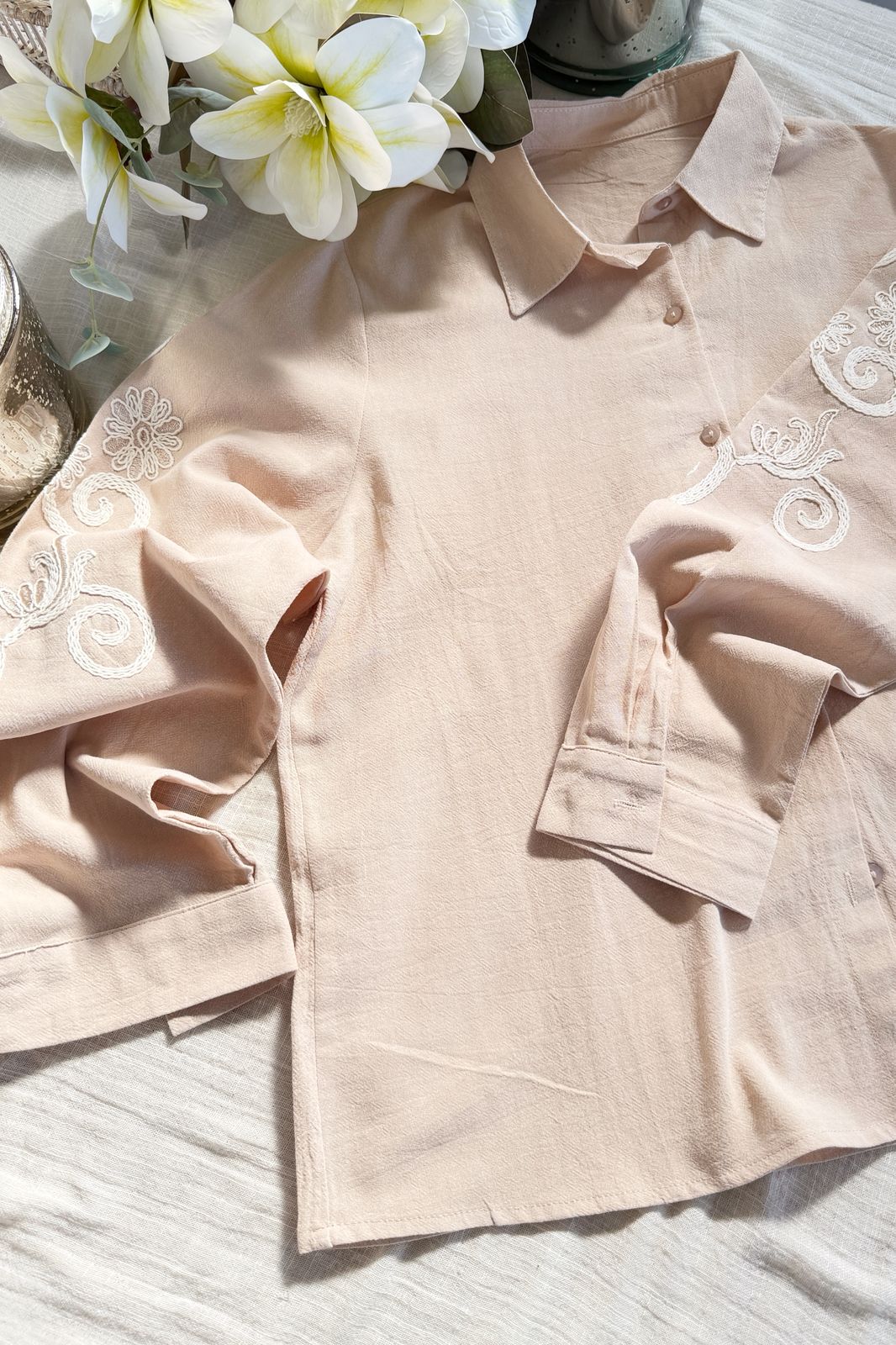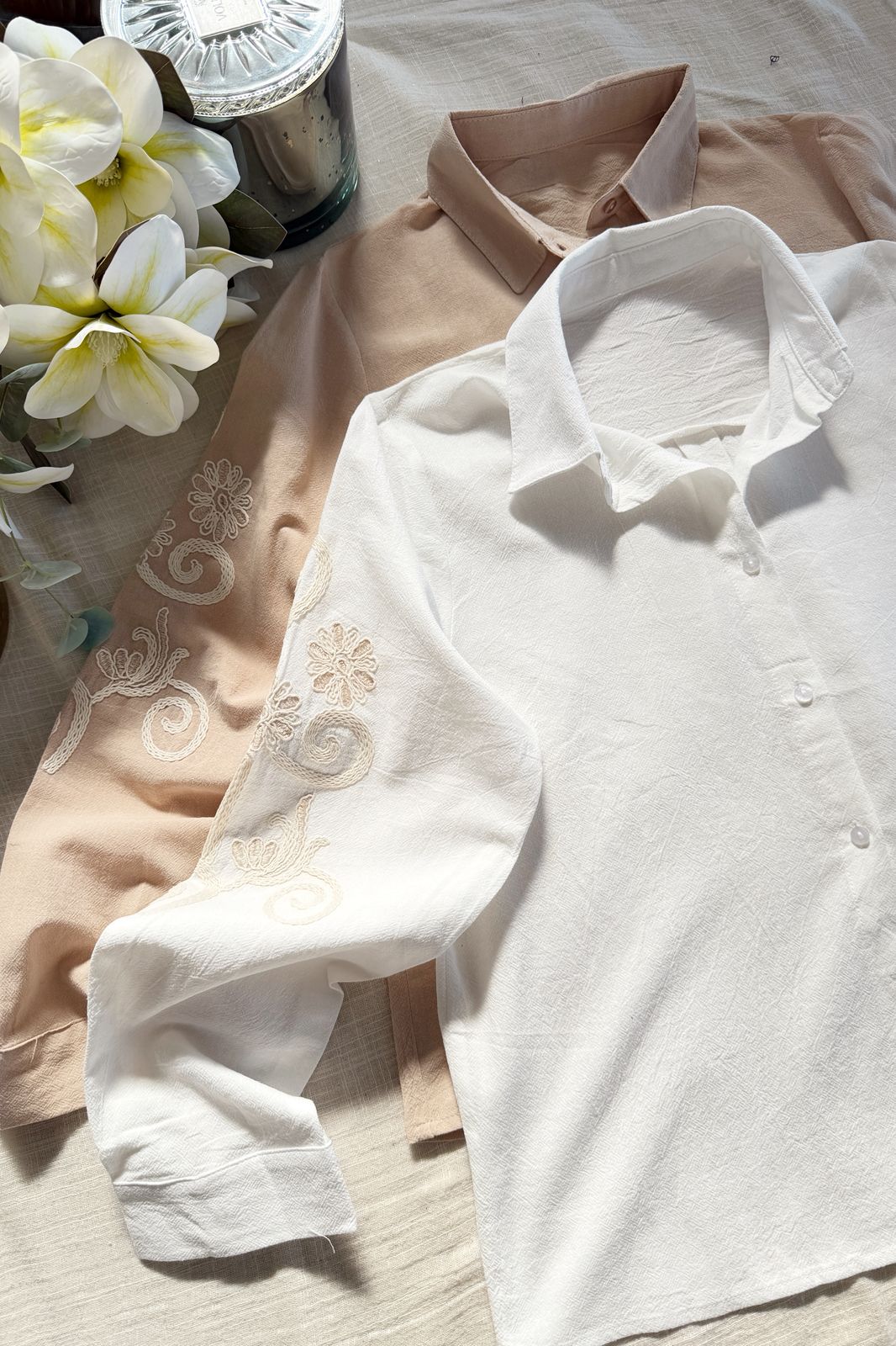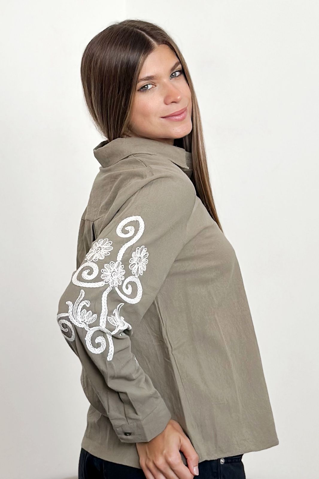 #Camisa #simil lino #bordado en mangas #TALLE UNICO