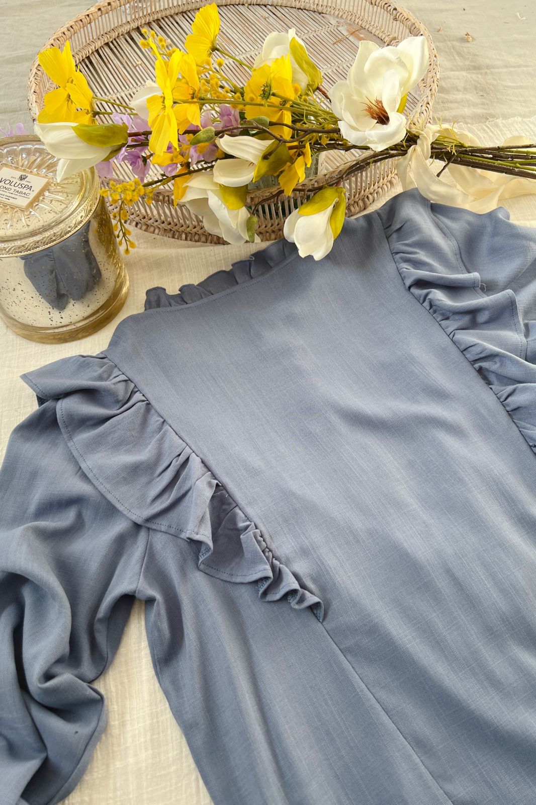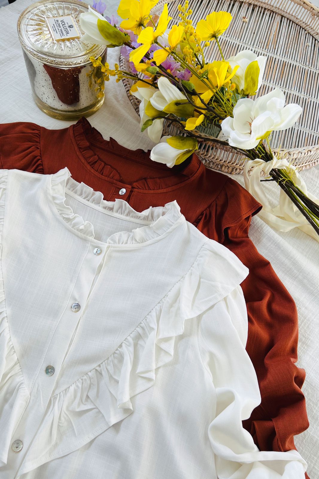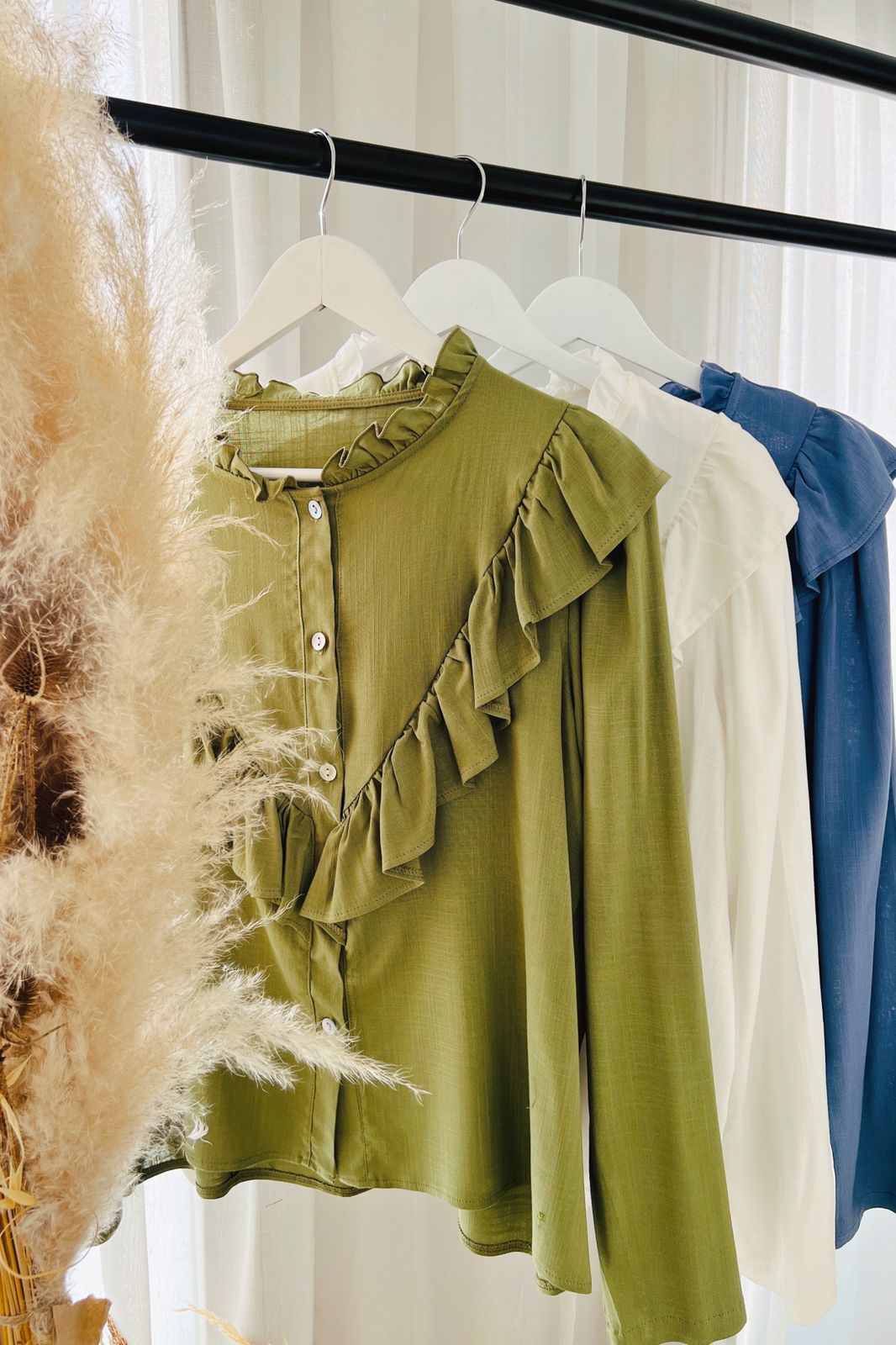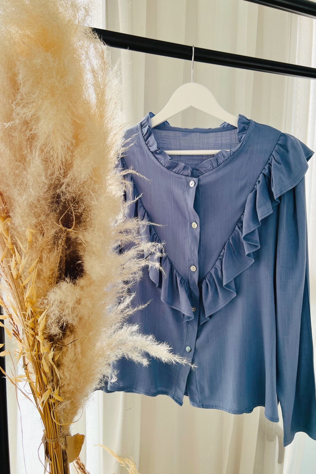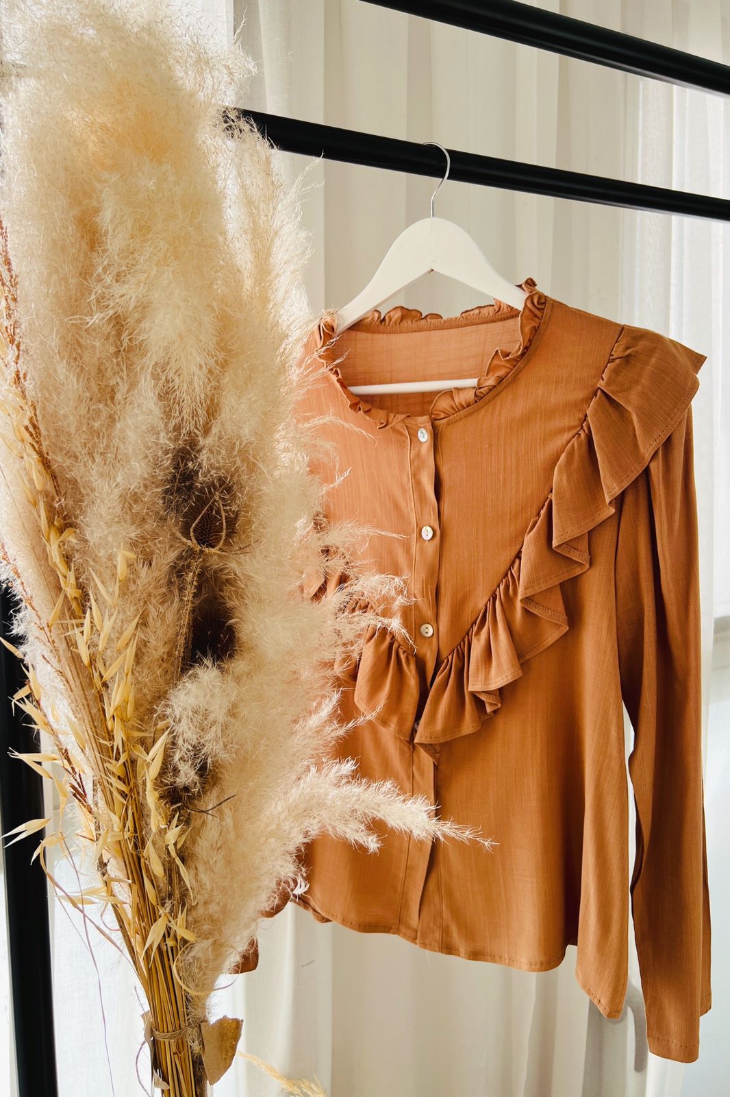 #Camisa #manga larga #simil lino #voladitos en cuello pecho y espada #TALLE UNICO