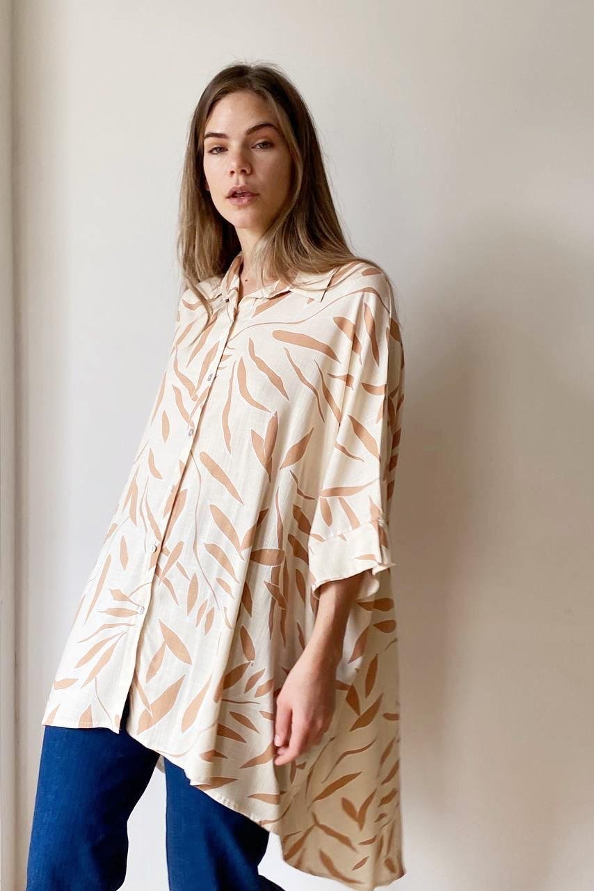 #Maxi Camisa #Lino Estampado #Eucalipto #TALLE UNICO