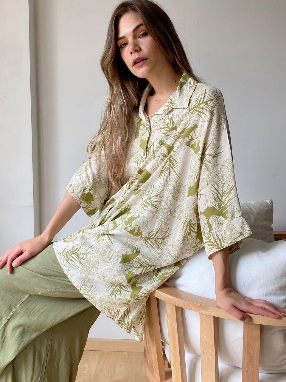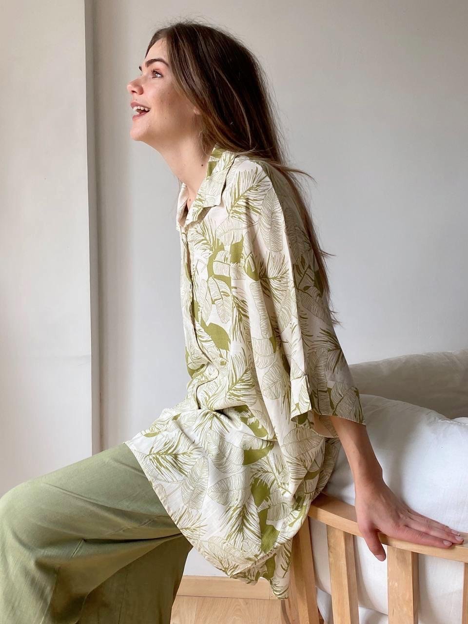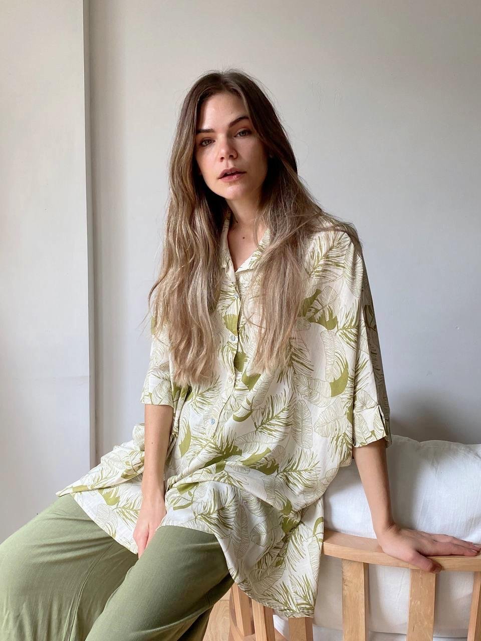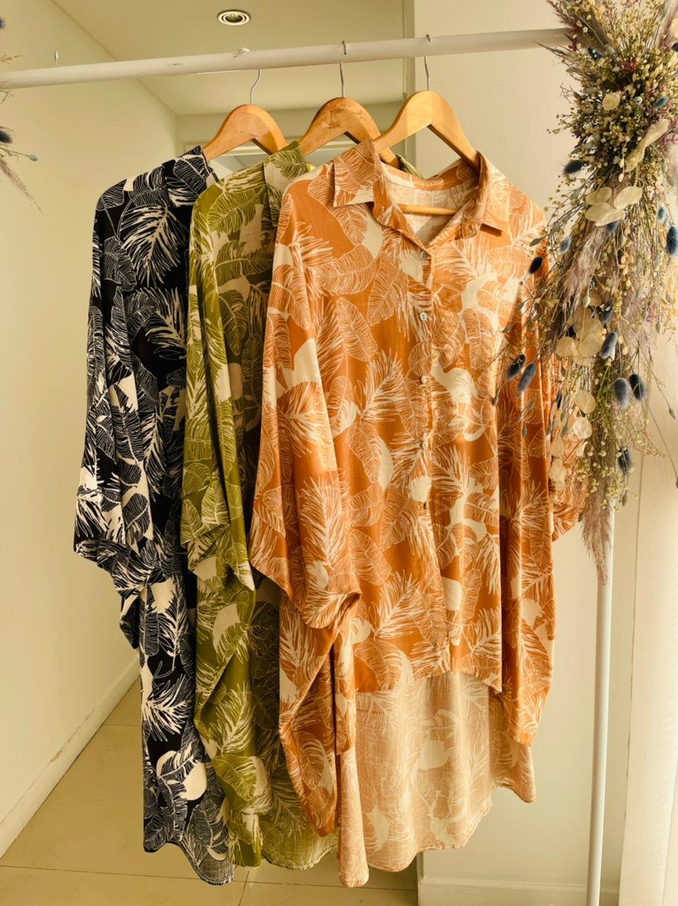 #Maxi Camisa #Lino Estampado #Palmera #TALLE UNICO
