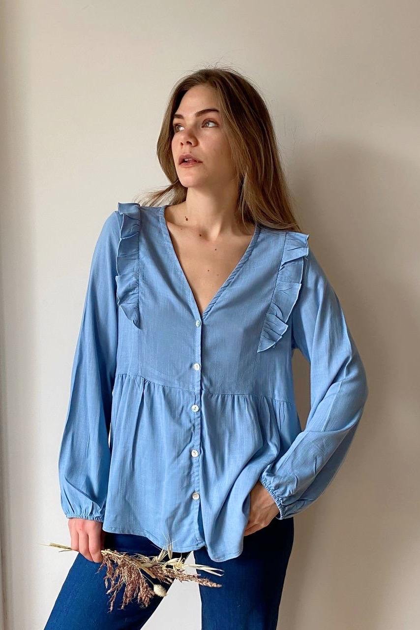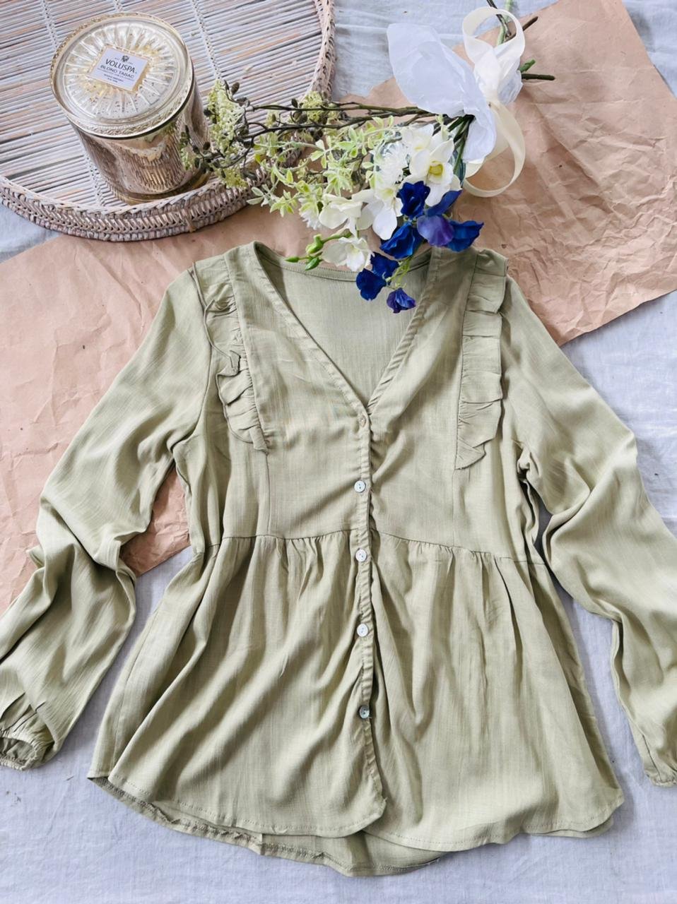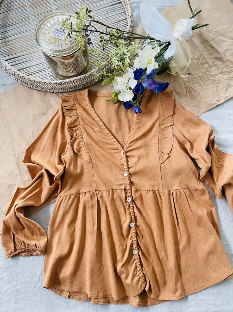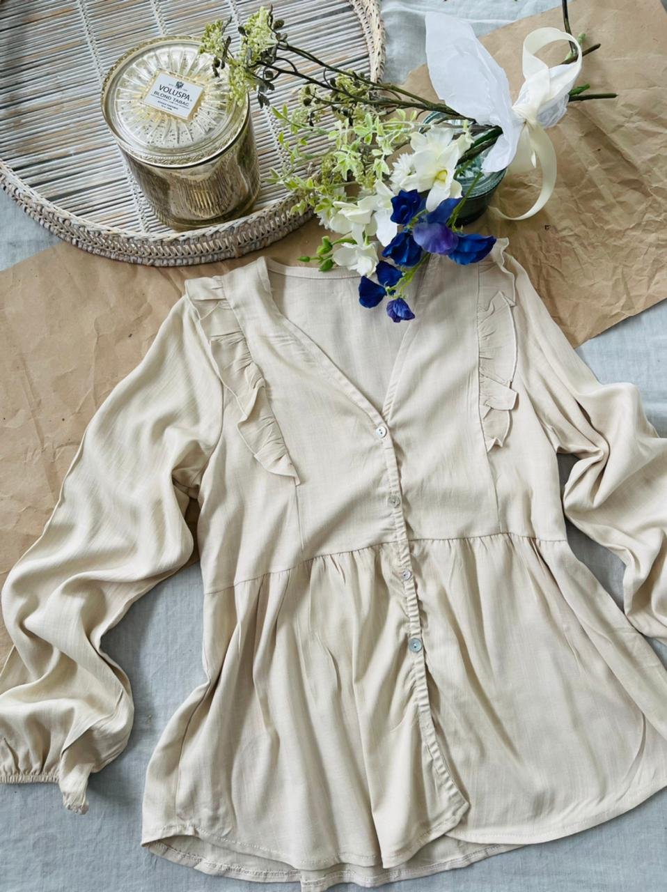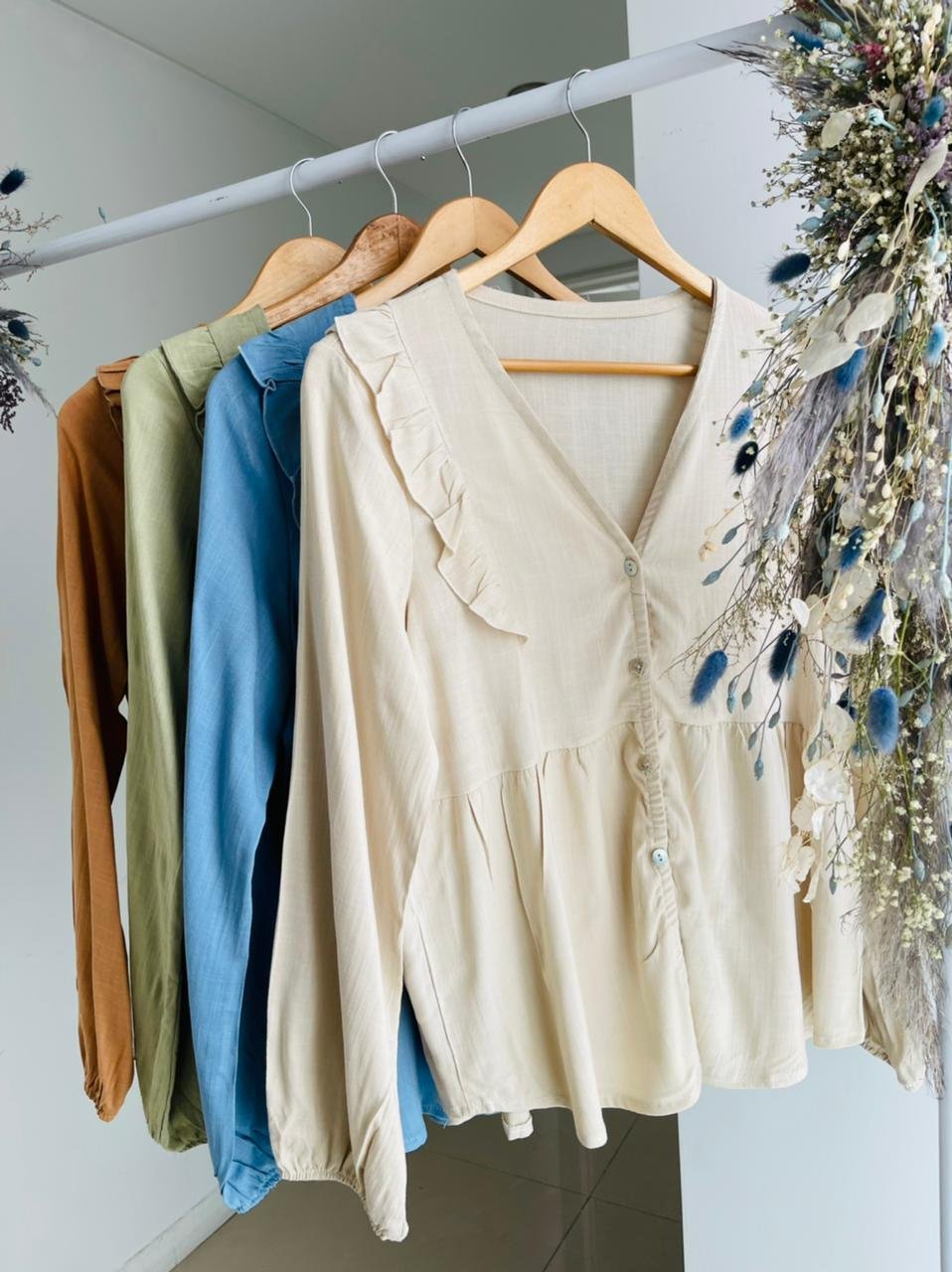#Camisa #Lino Elastizado #Manga Larga #Voladitos #TALLE UNICO
