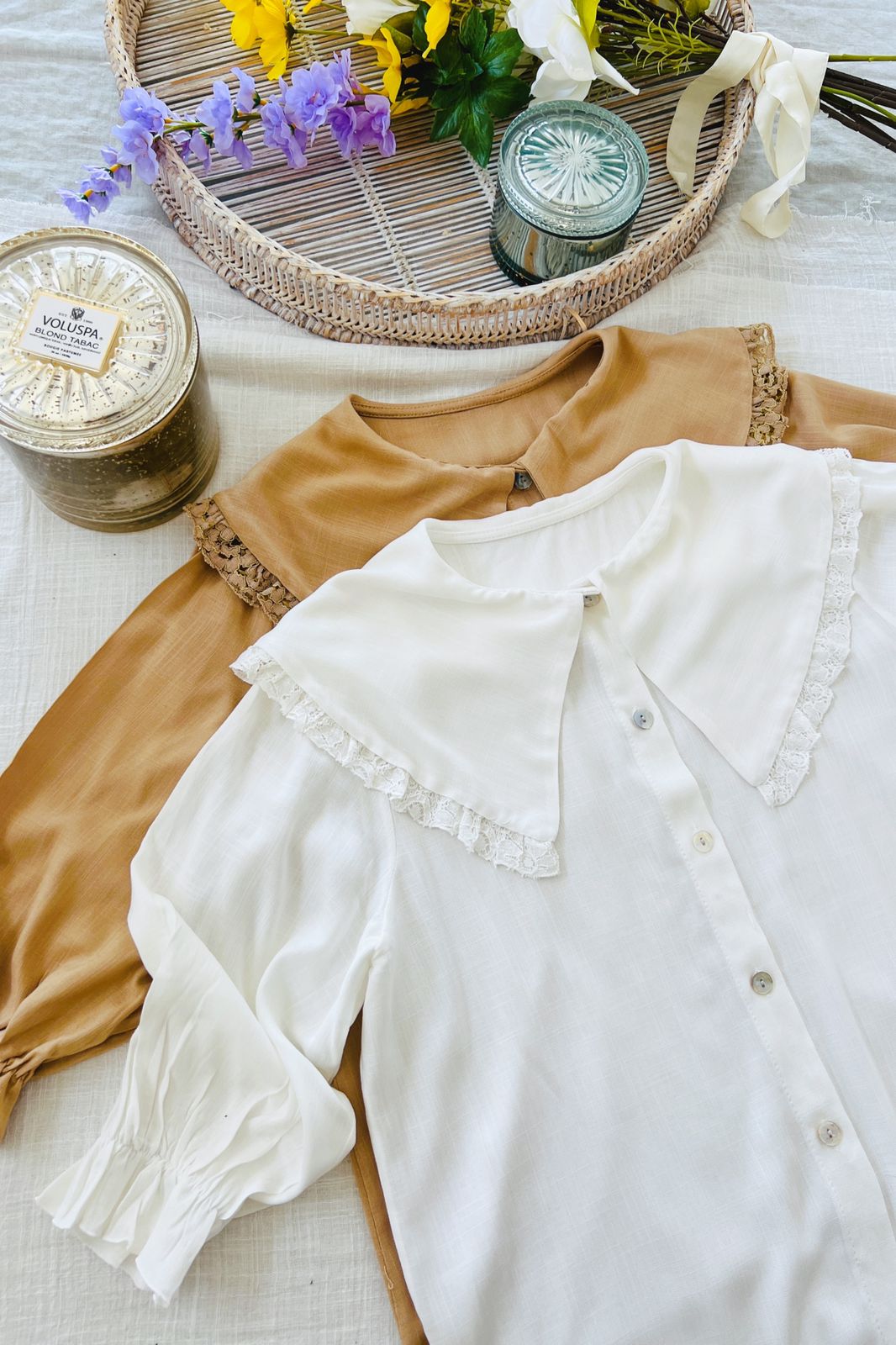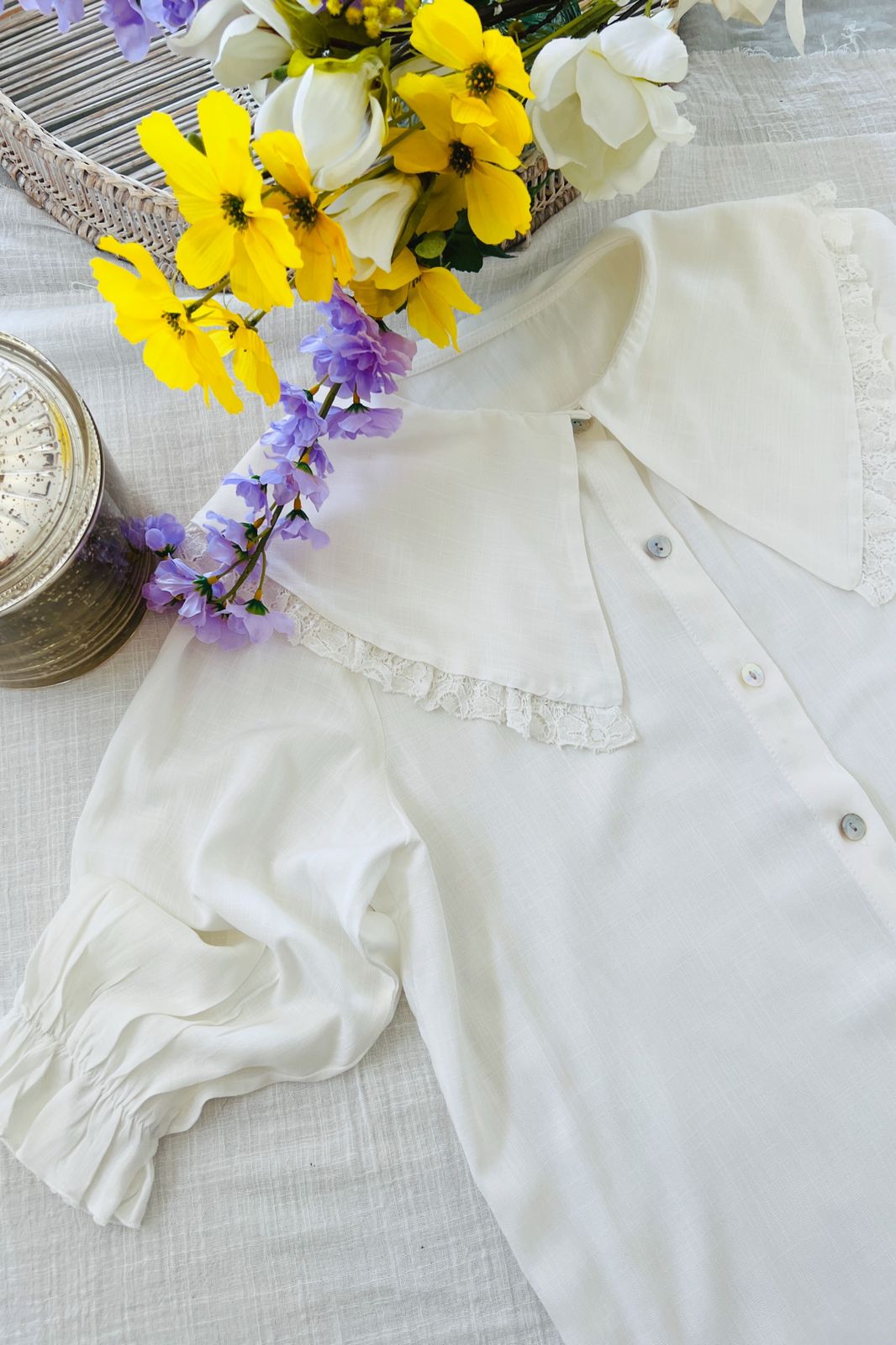 #Blusa #simil lino #manguita globo # manguita en encaje al tono #TALLE UNICO
