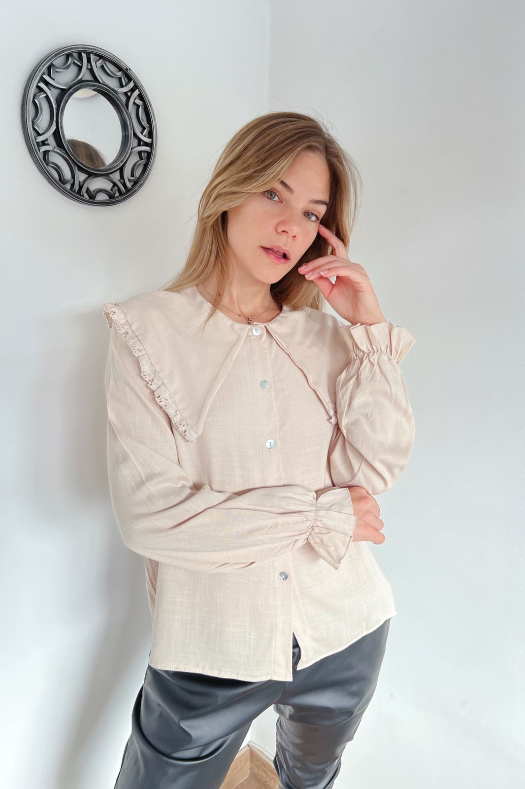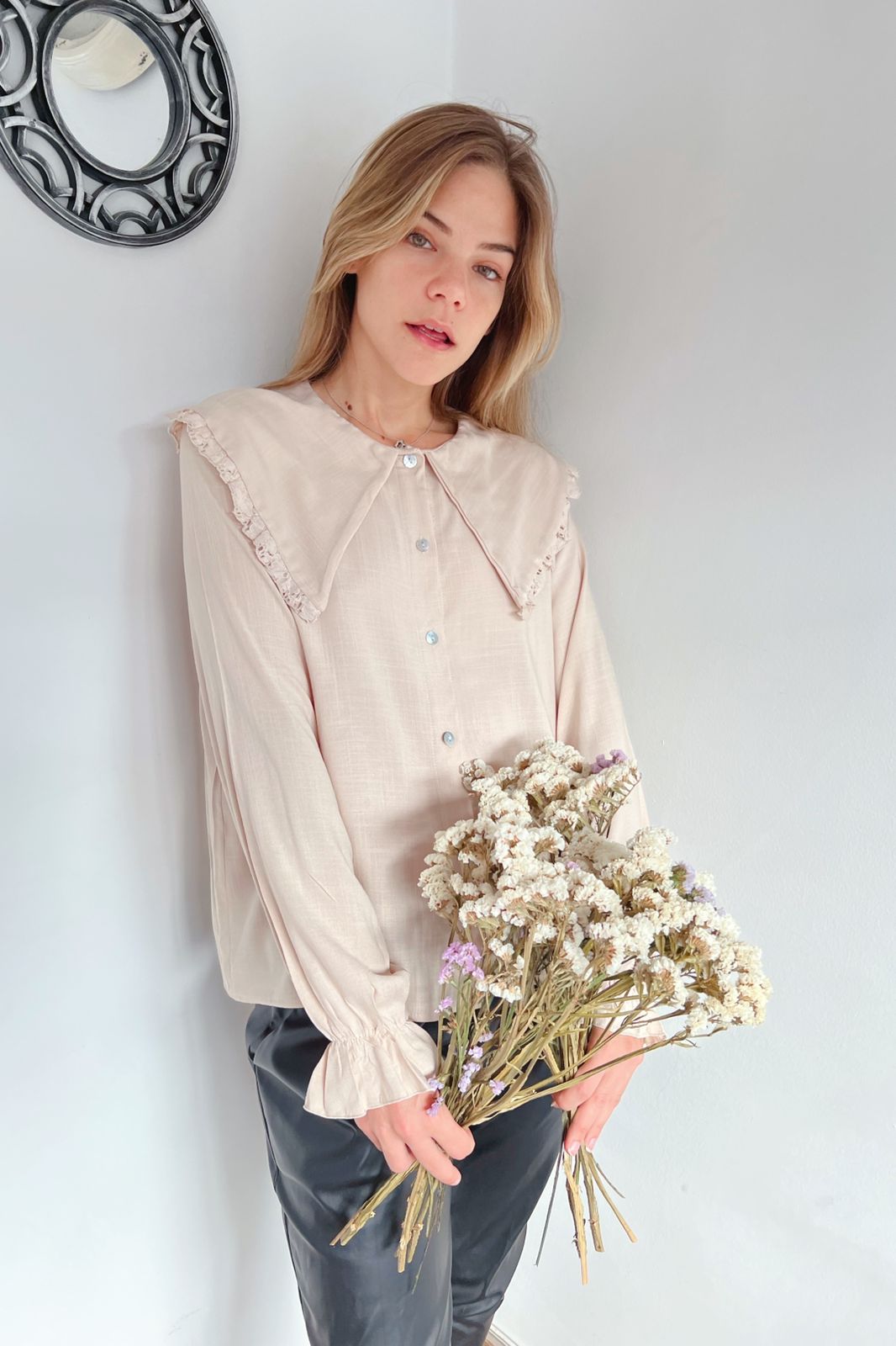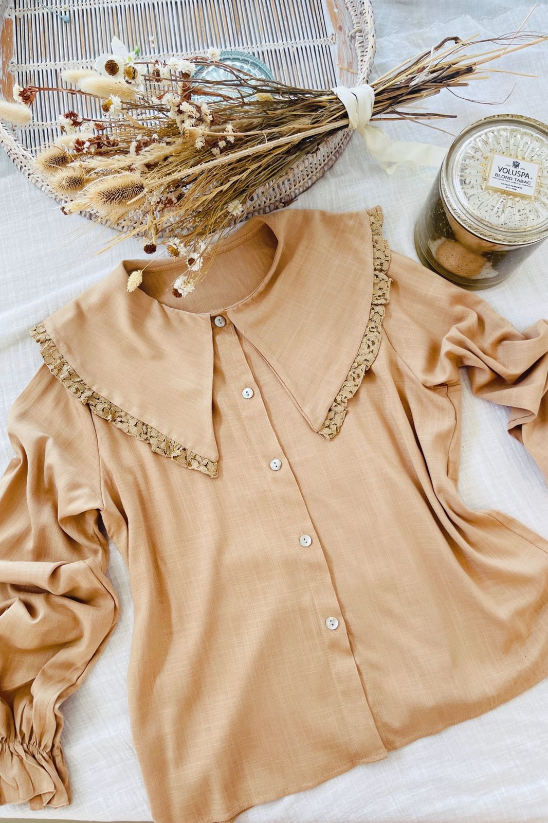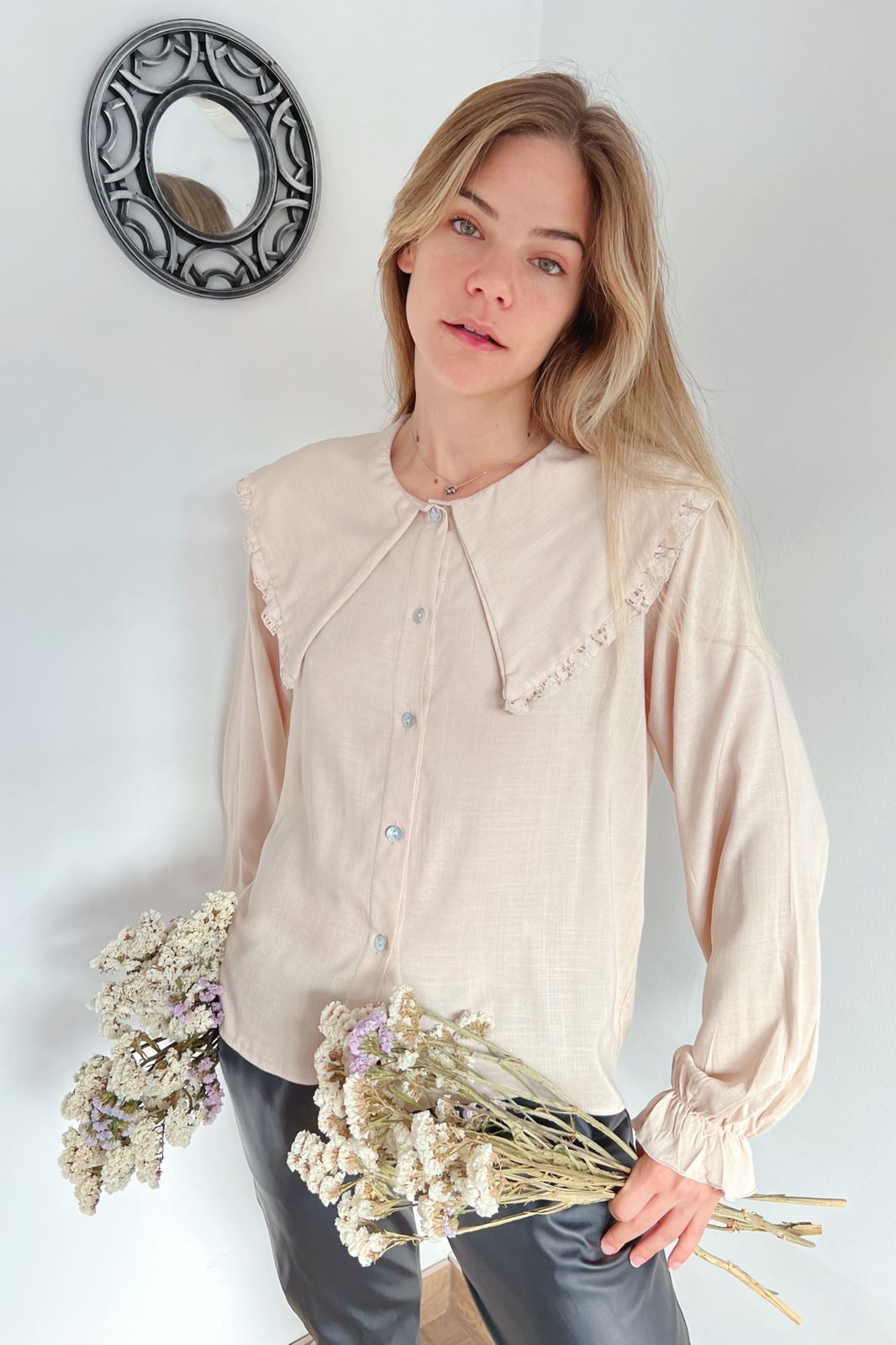 #Blusa #simil lino #manga princesa #manga encaje al tono #escote V #TALLE UNICO