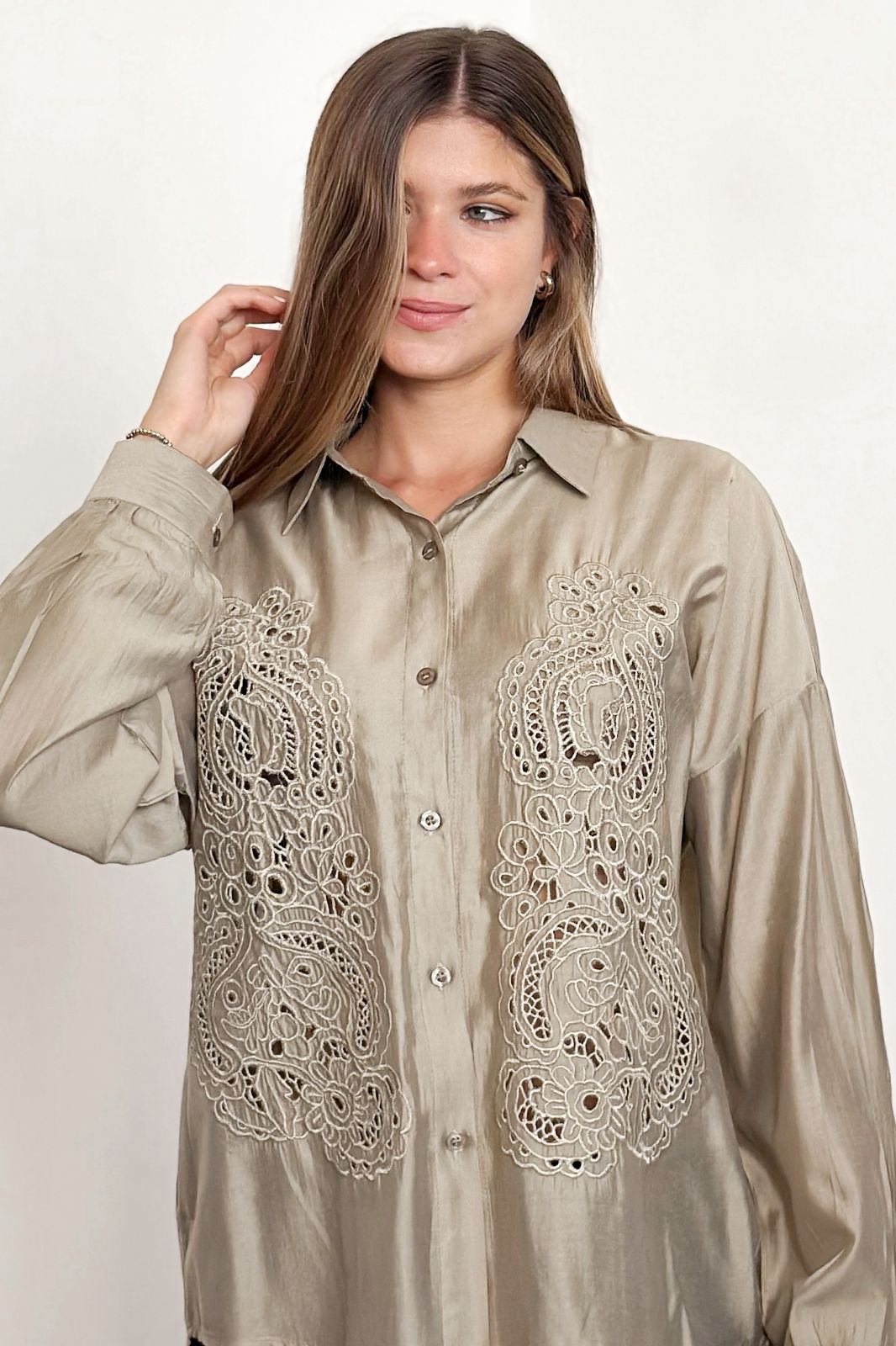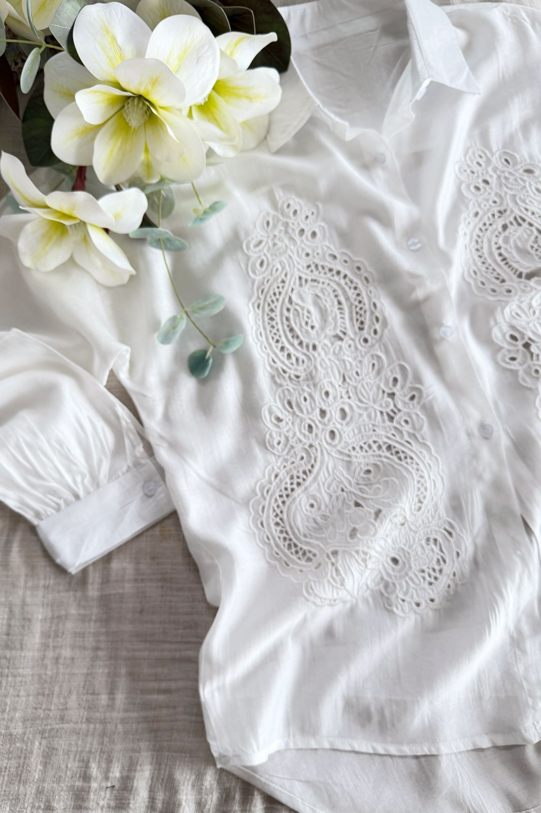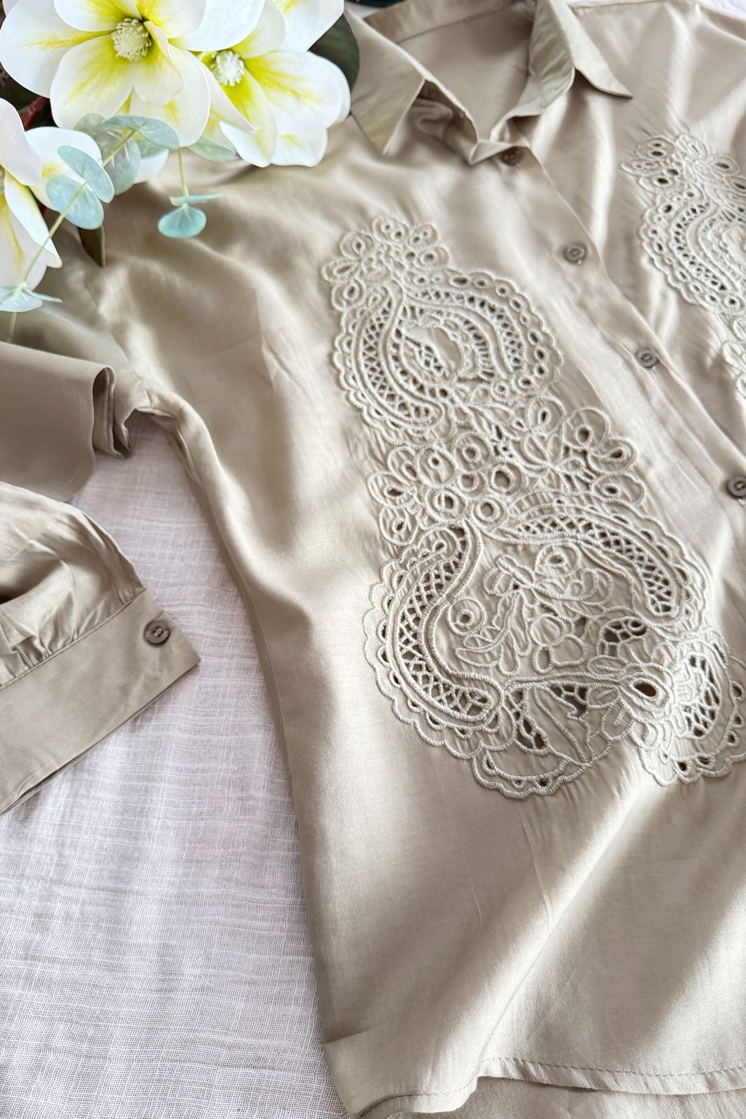 #Camisa #tipo lino #bordado #detalles delicados en lentejuela