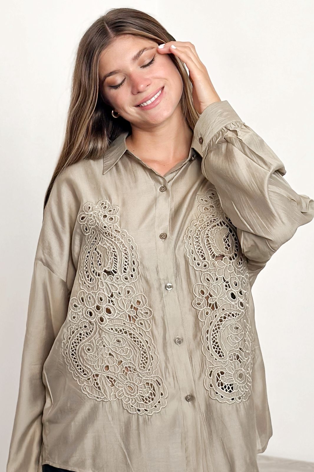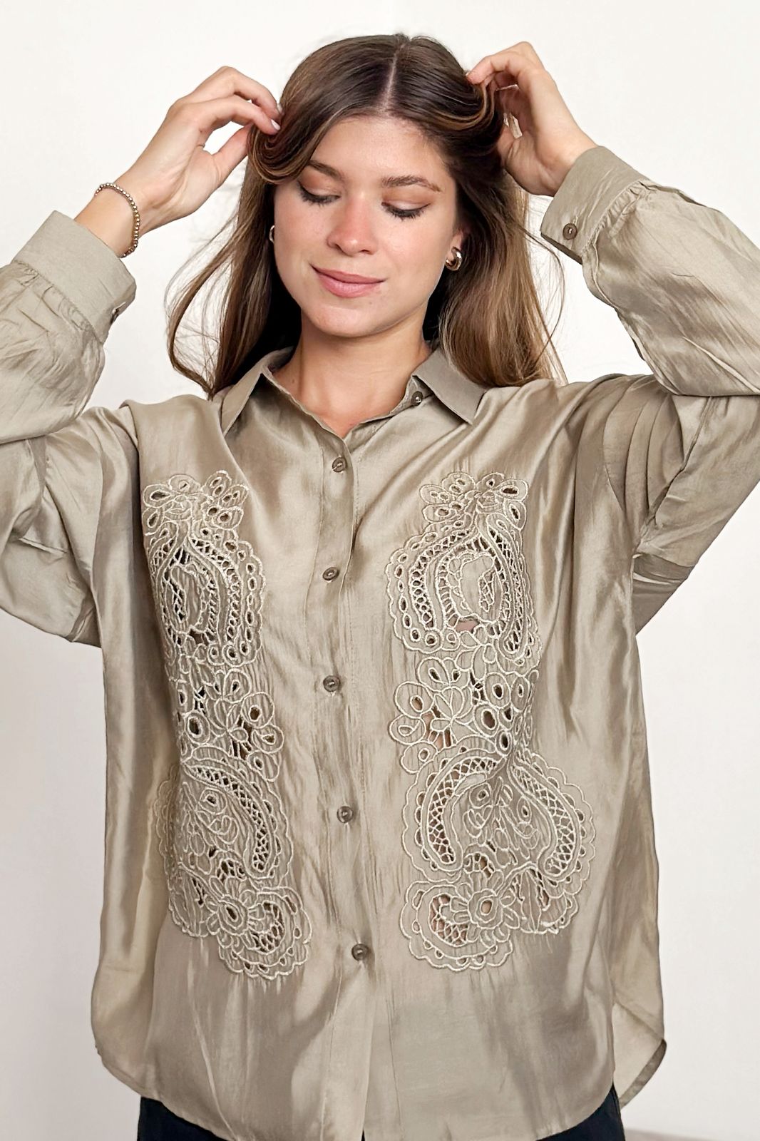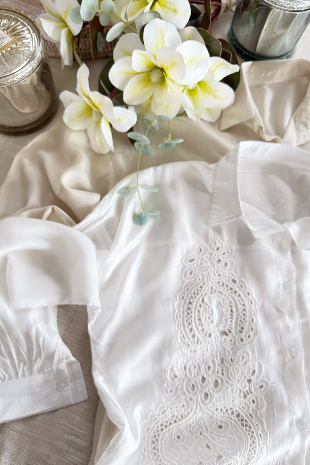 #Camisa #tipo lino #bordado #detalles delicados en lentejuela