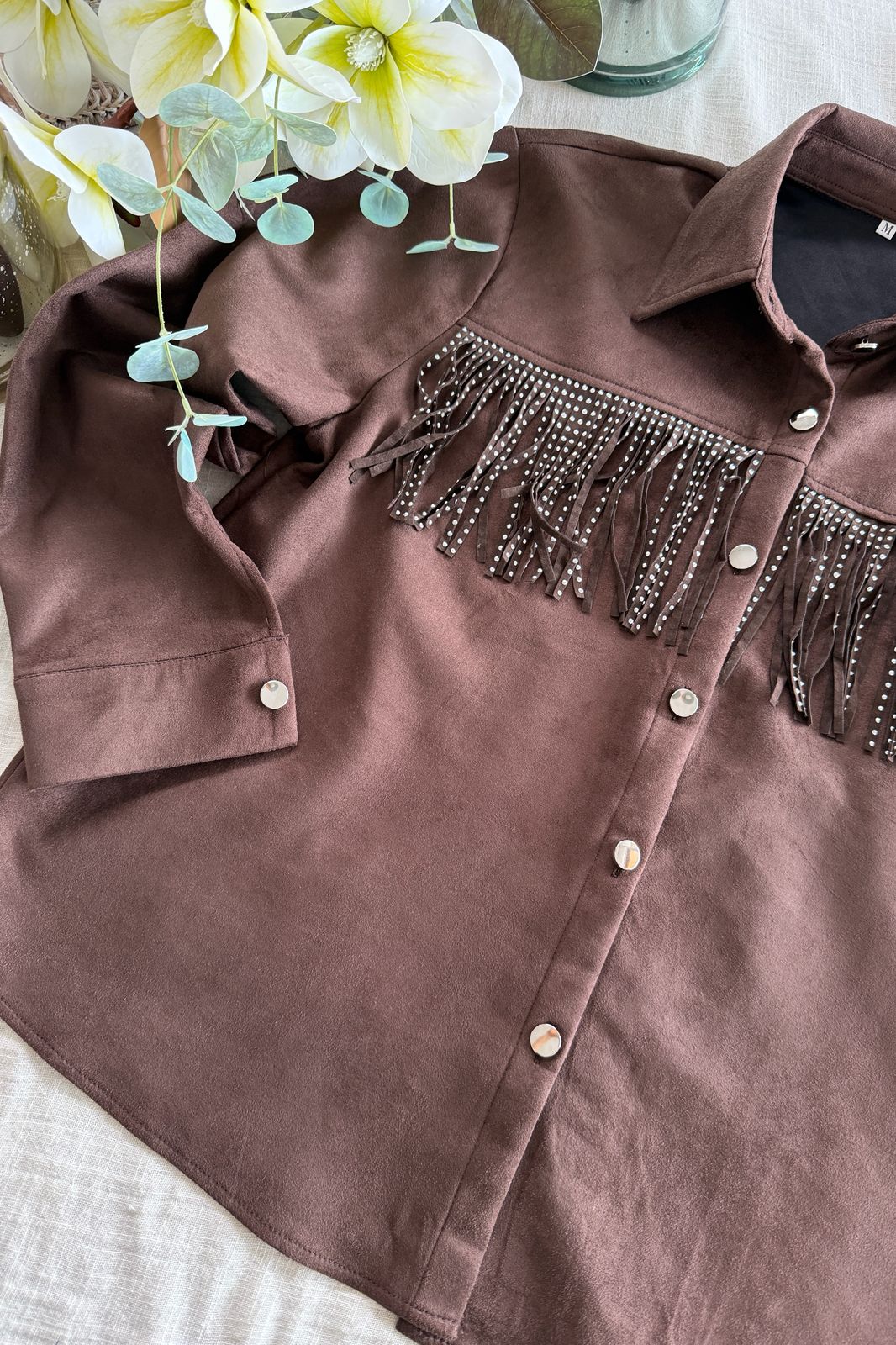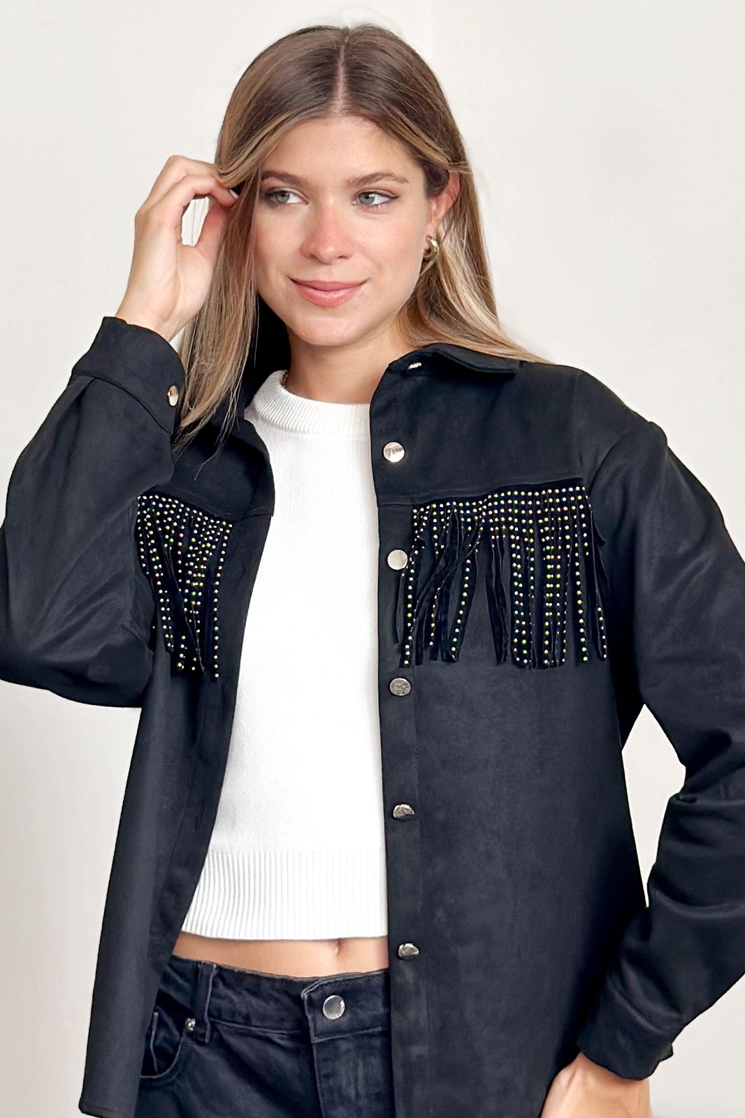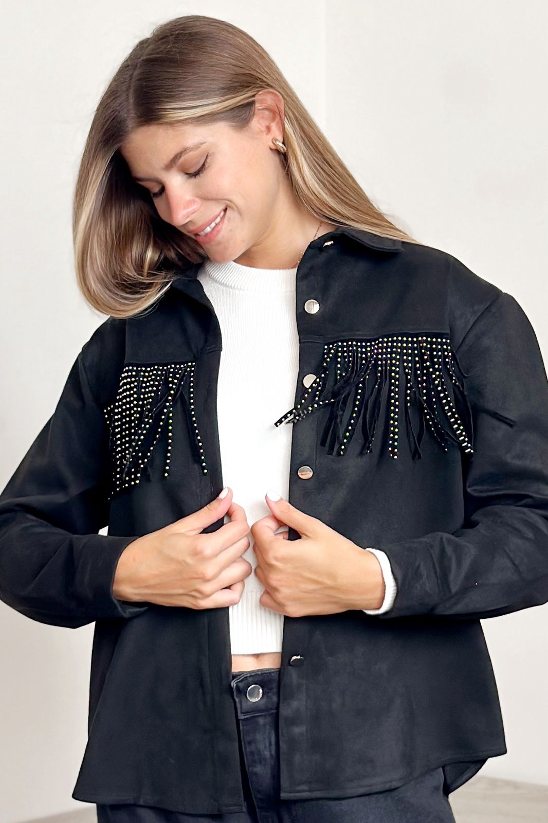 #Camisaco #suede #gamusa #flecos en delantero con detalles en hotfix