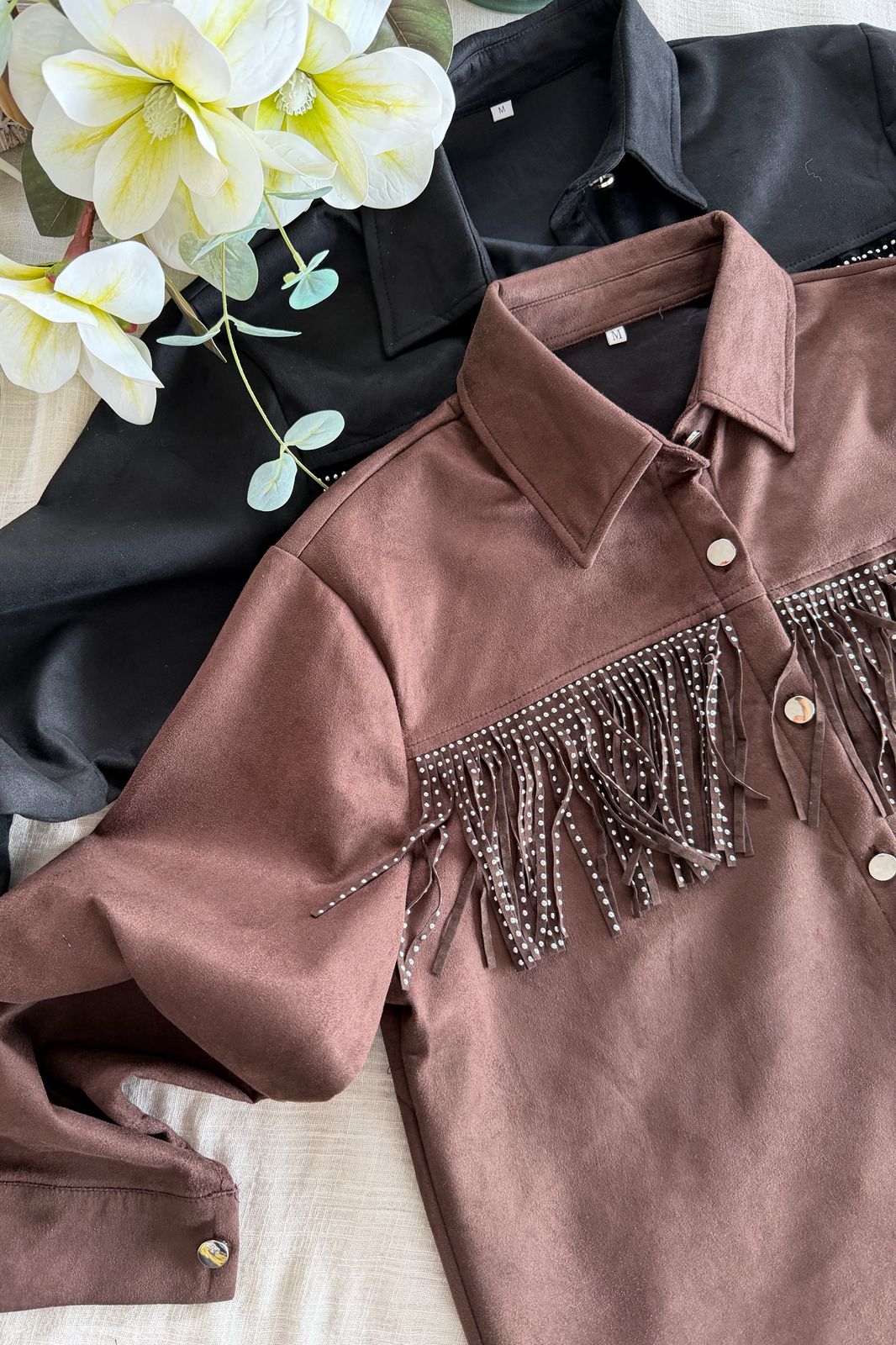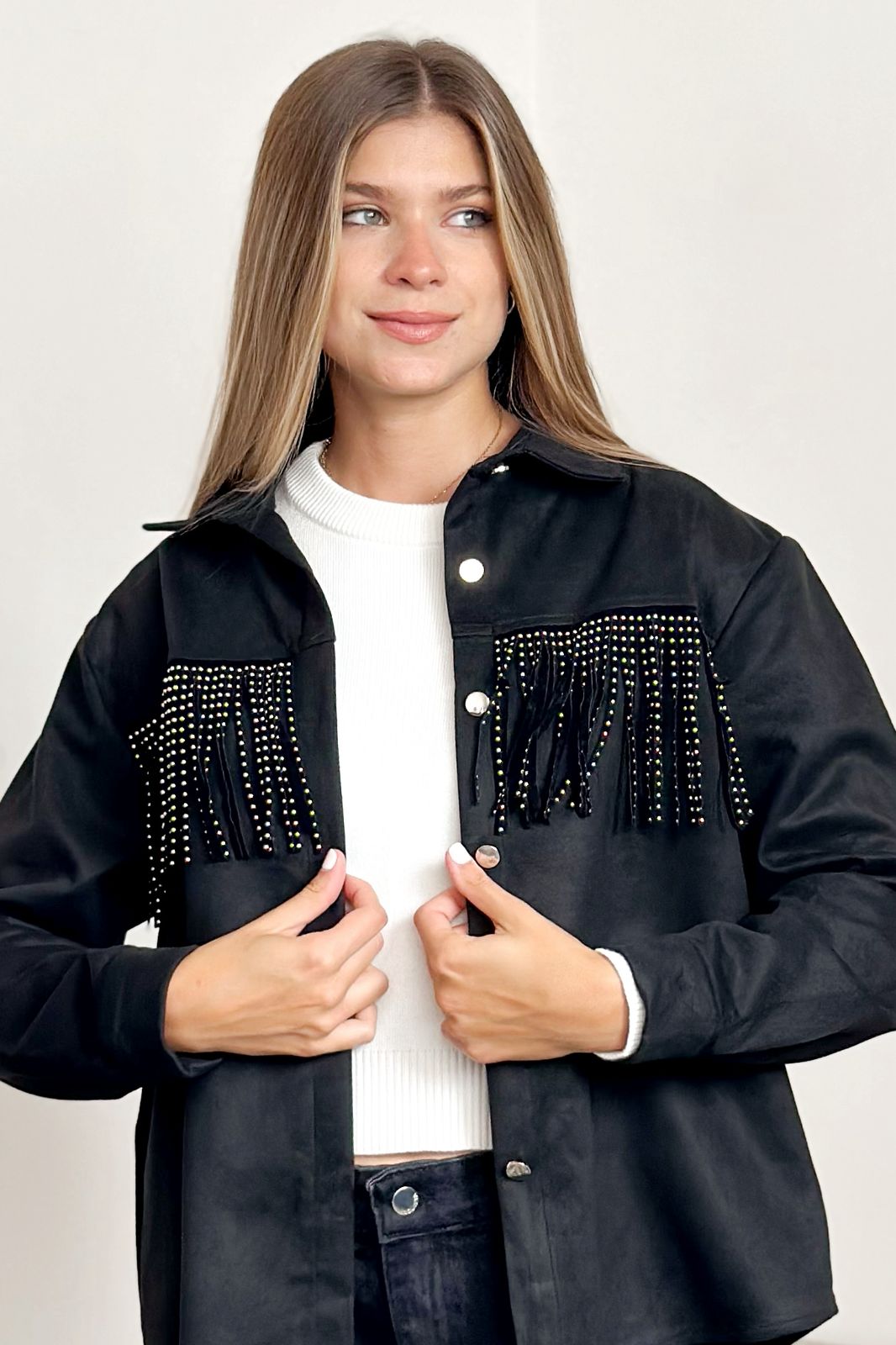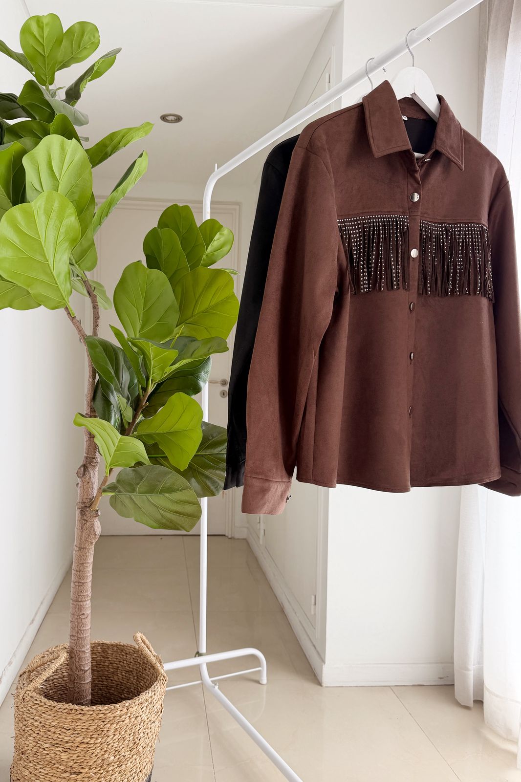 #Camisaco #suede #gamusa #flecos en delantero con detalles en hotfix