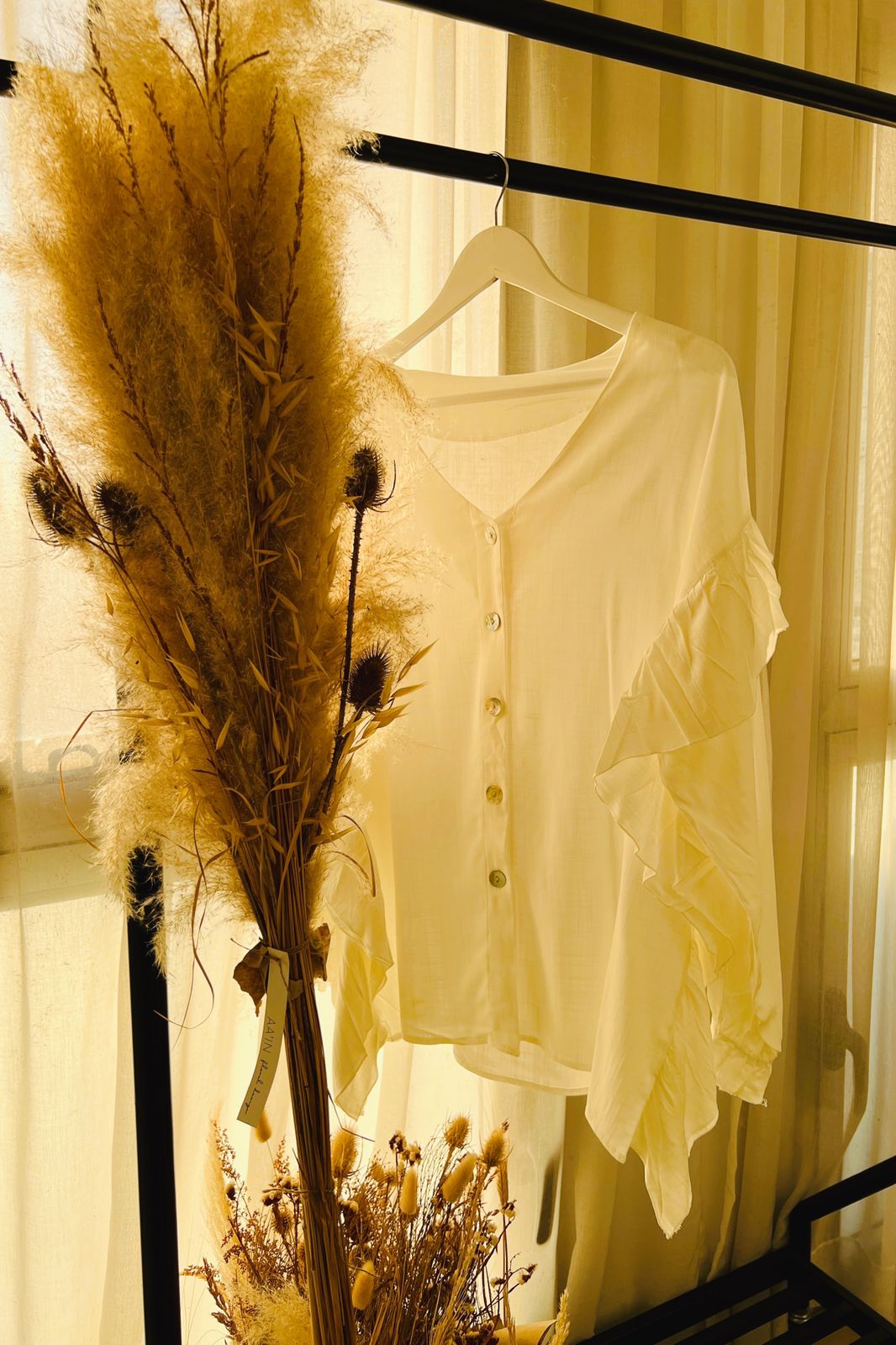#Camisa #detalle aplique broderie en hombros #manga globo #fit amplio #alforzas en delantero #TALLE UNICO