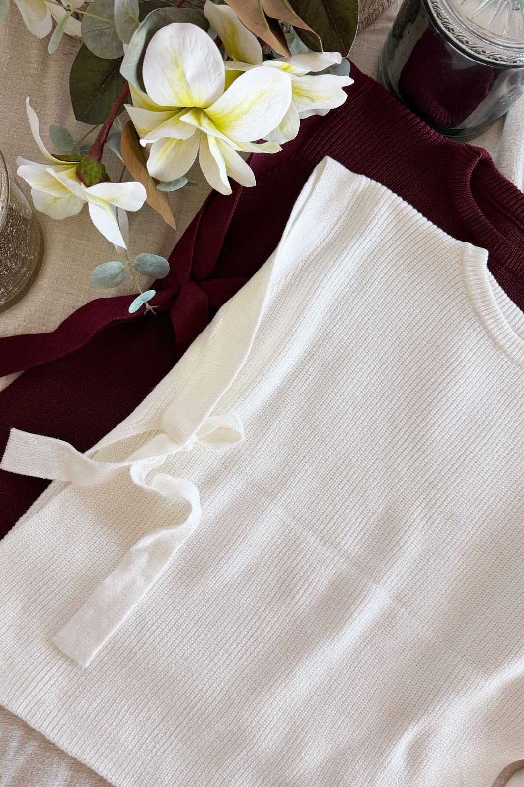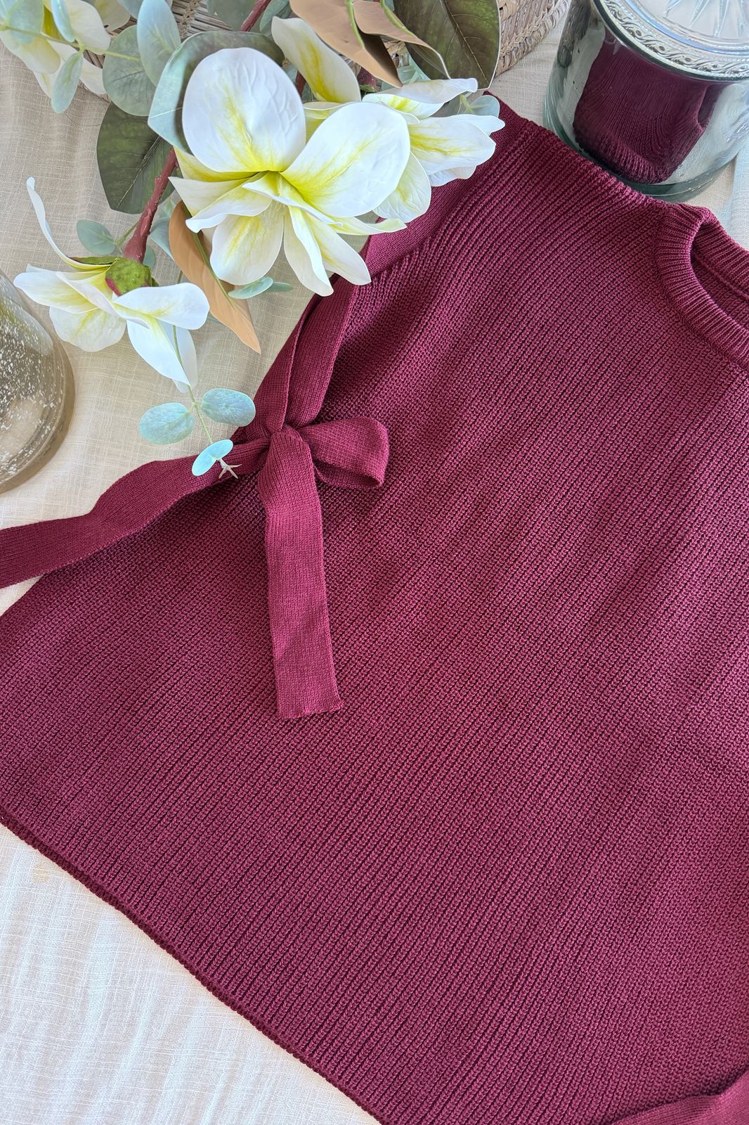 #Chaleco #cuello redondo #punto perlee #abierto en los costados #lazos para atar a los costados #SIMIL BREMER #TALLE UNICO