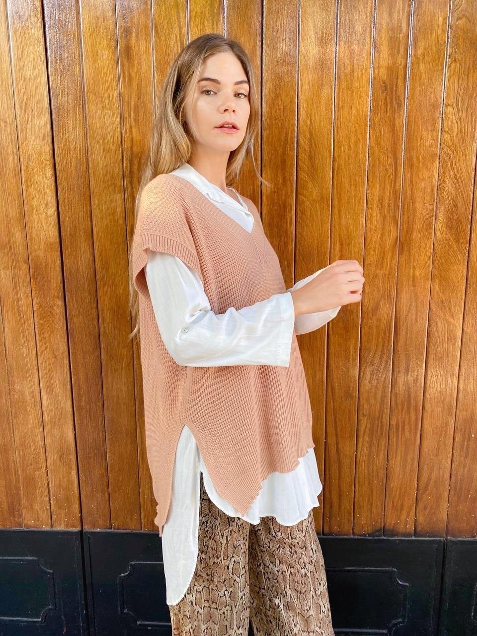 #Chaleco #cuello redondo #punto perlee #abierto en los costados #lazos para atar a los costados #SIMIL BREMER #TALLE UNICO