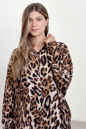 #Conjunto #camisa #largo de manga regulable #pantalon #con elastico y bolsillos #animal print #sedita arrugada