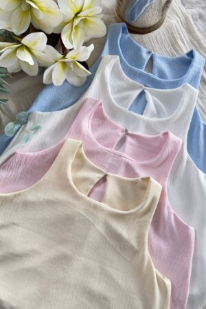 #Blusa #Escote Redondo Delantera #Escote V Profundo En Espalda #Voladitos #Lino Crep #TALLE UNICO #TALLE M/L(la modelo mide 170cm y es 38 de jean, te servira de referencia)