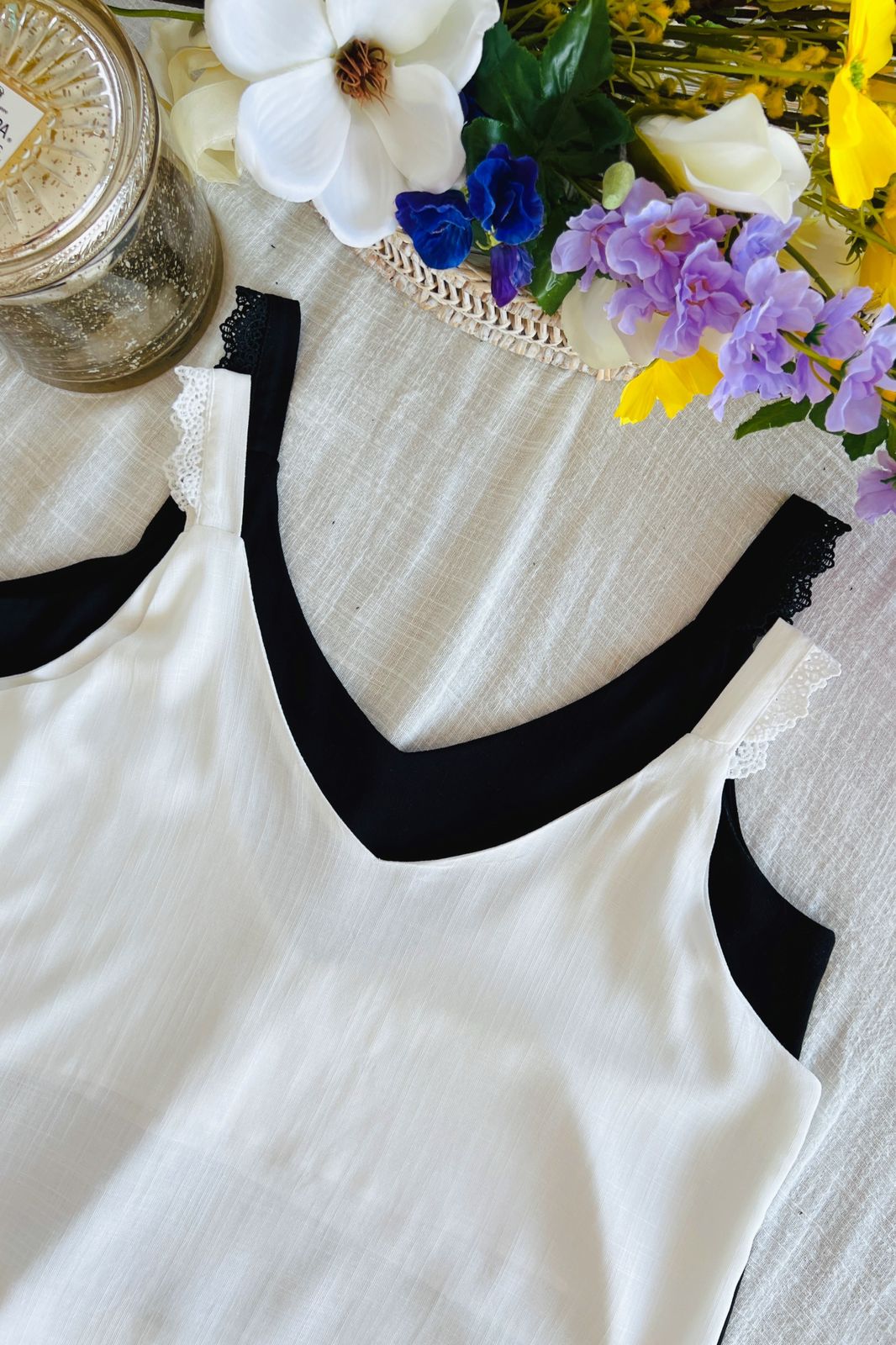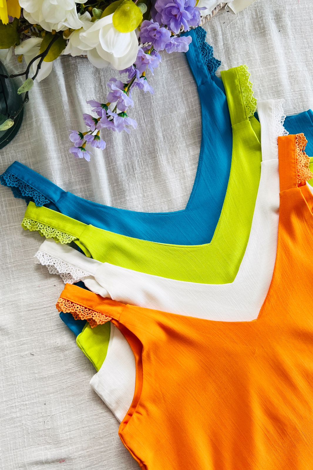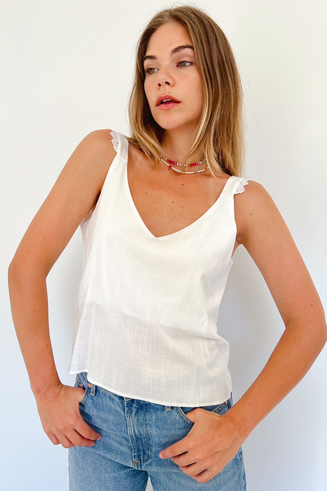 #Musculosa #simil lino #escote V #aplique en breteles #TALLE UNICO #TALLE M (la modelo mide 170 y es 40 de jean. te sirve de referencia)