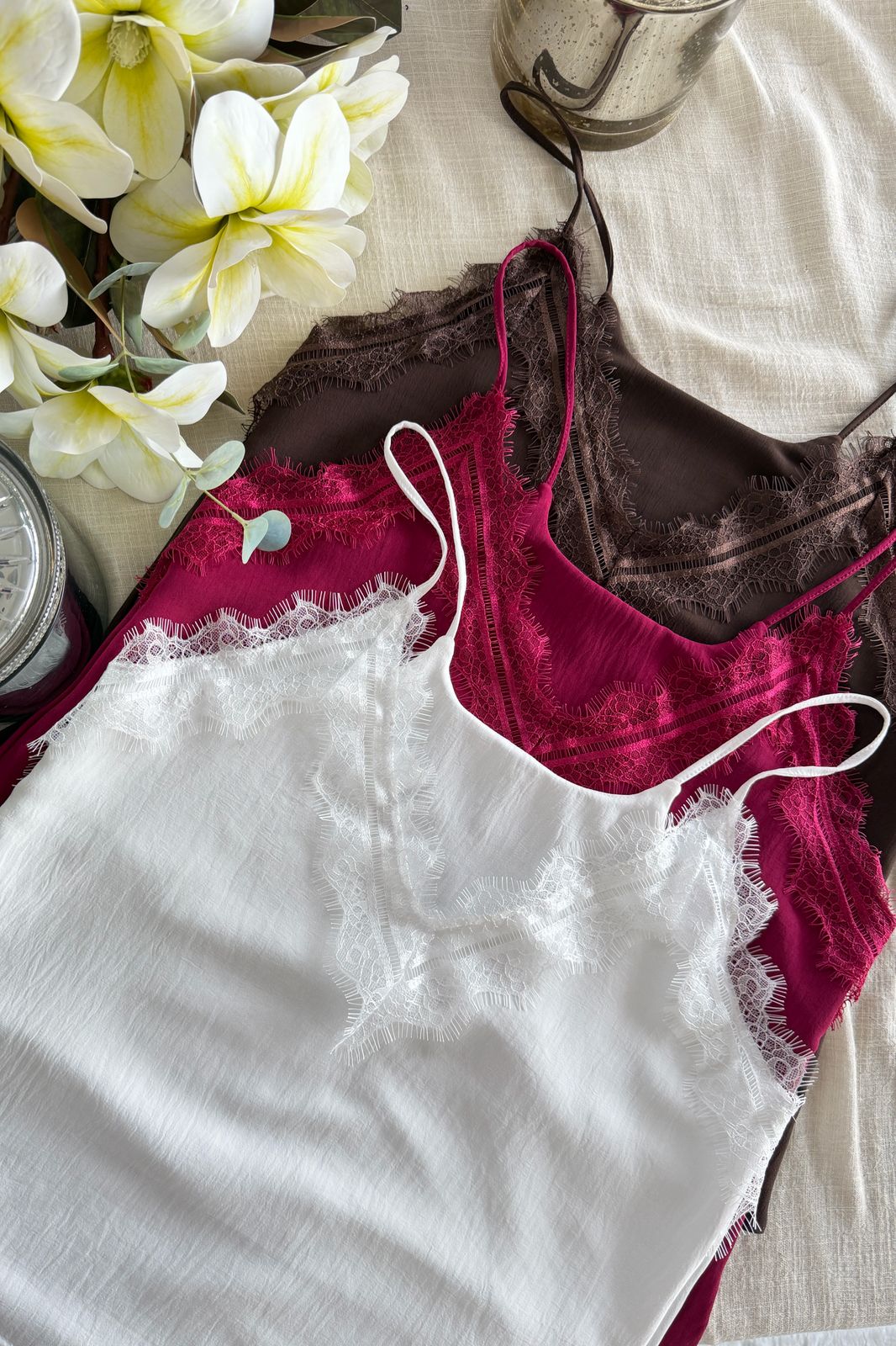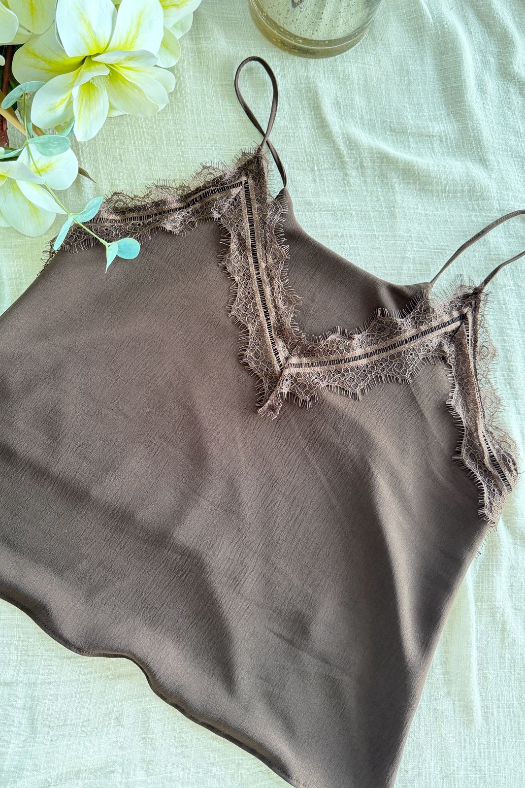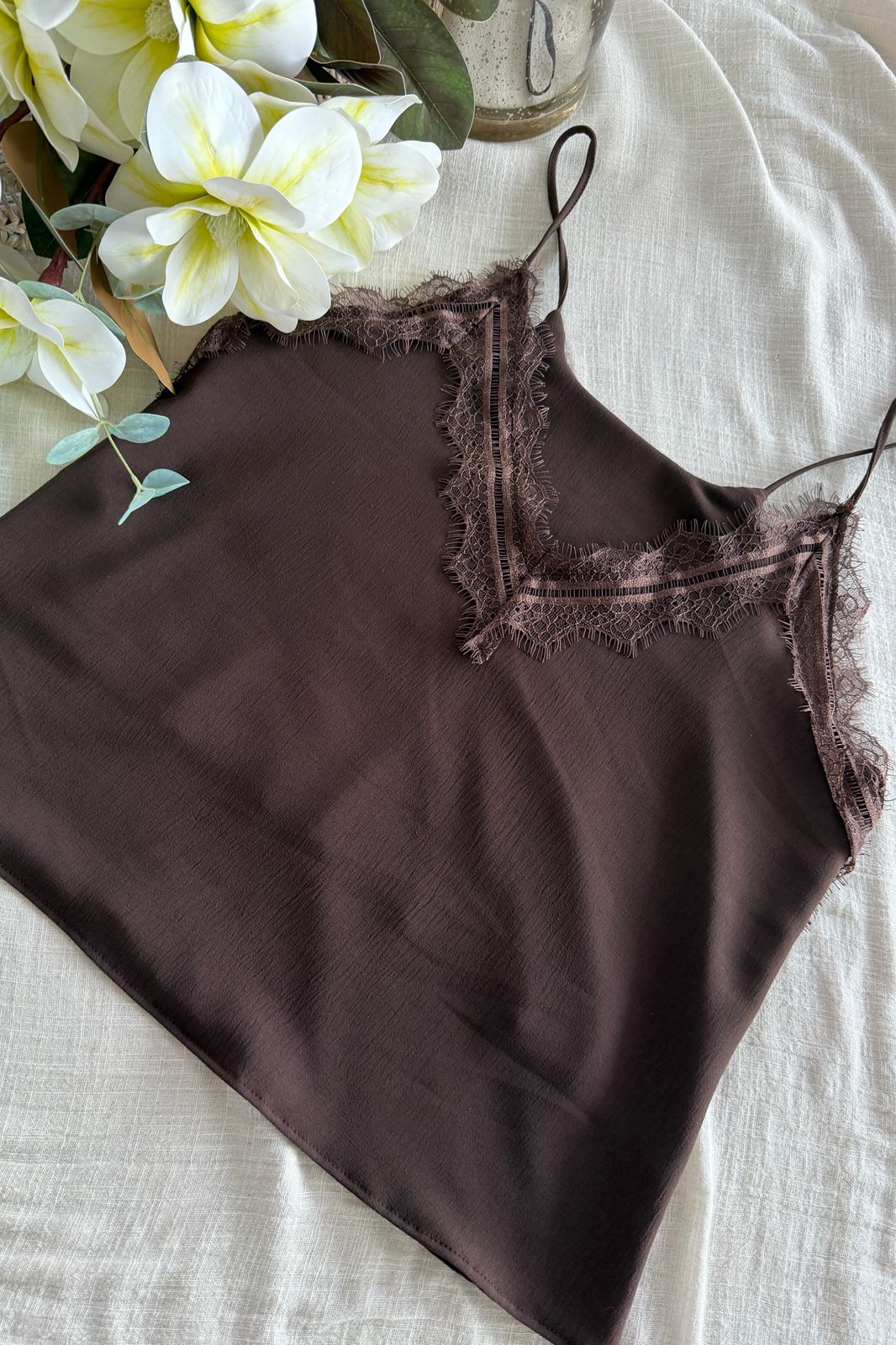 #Musculosa #crep lino #bretel finito #aplique en escote #escote V #TALLE UNICO