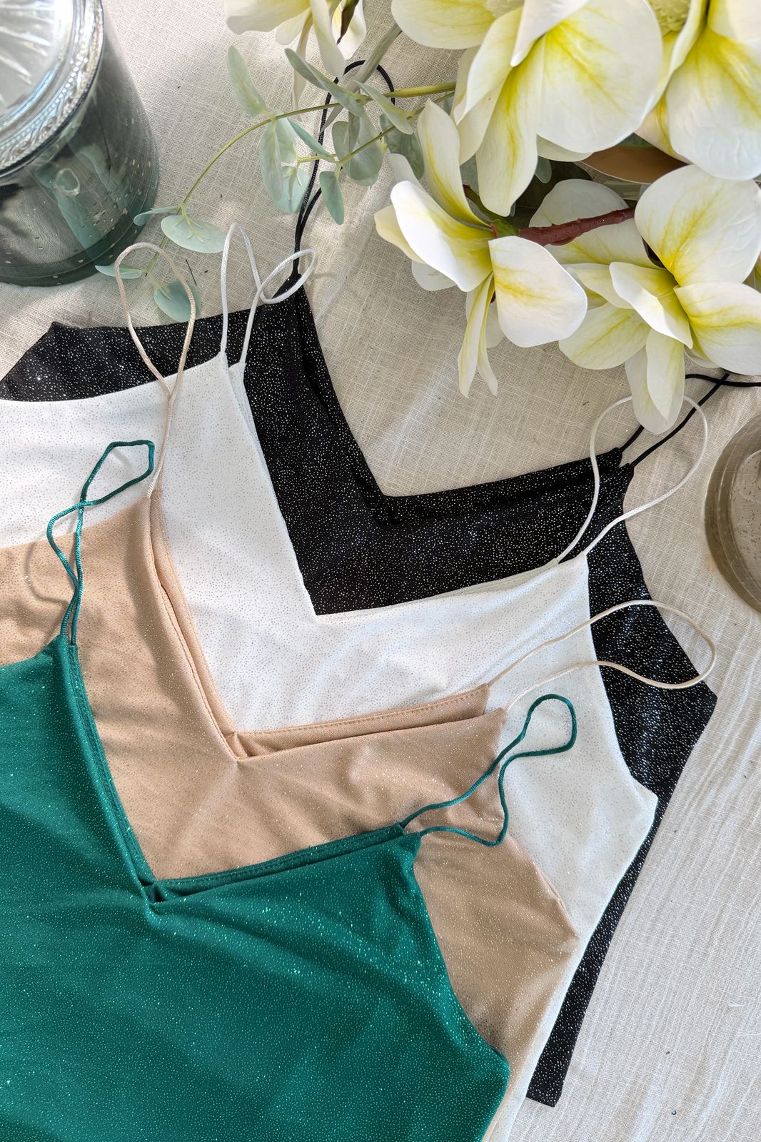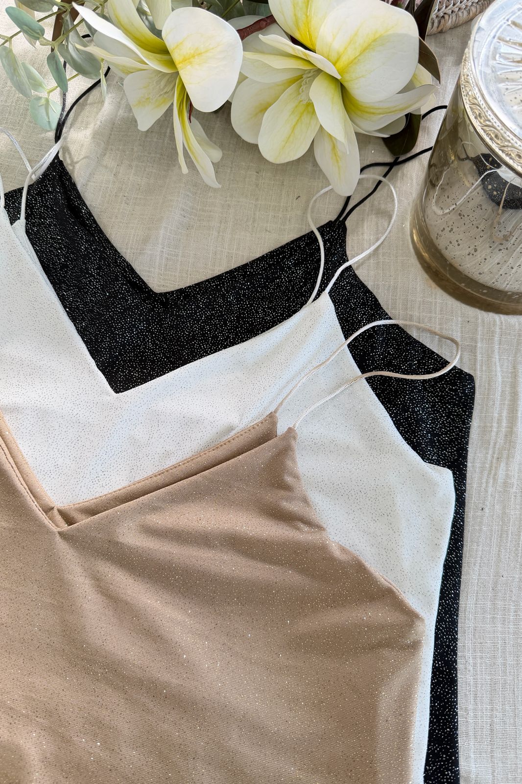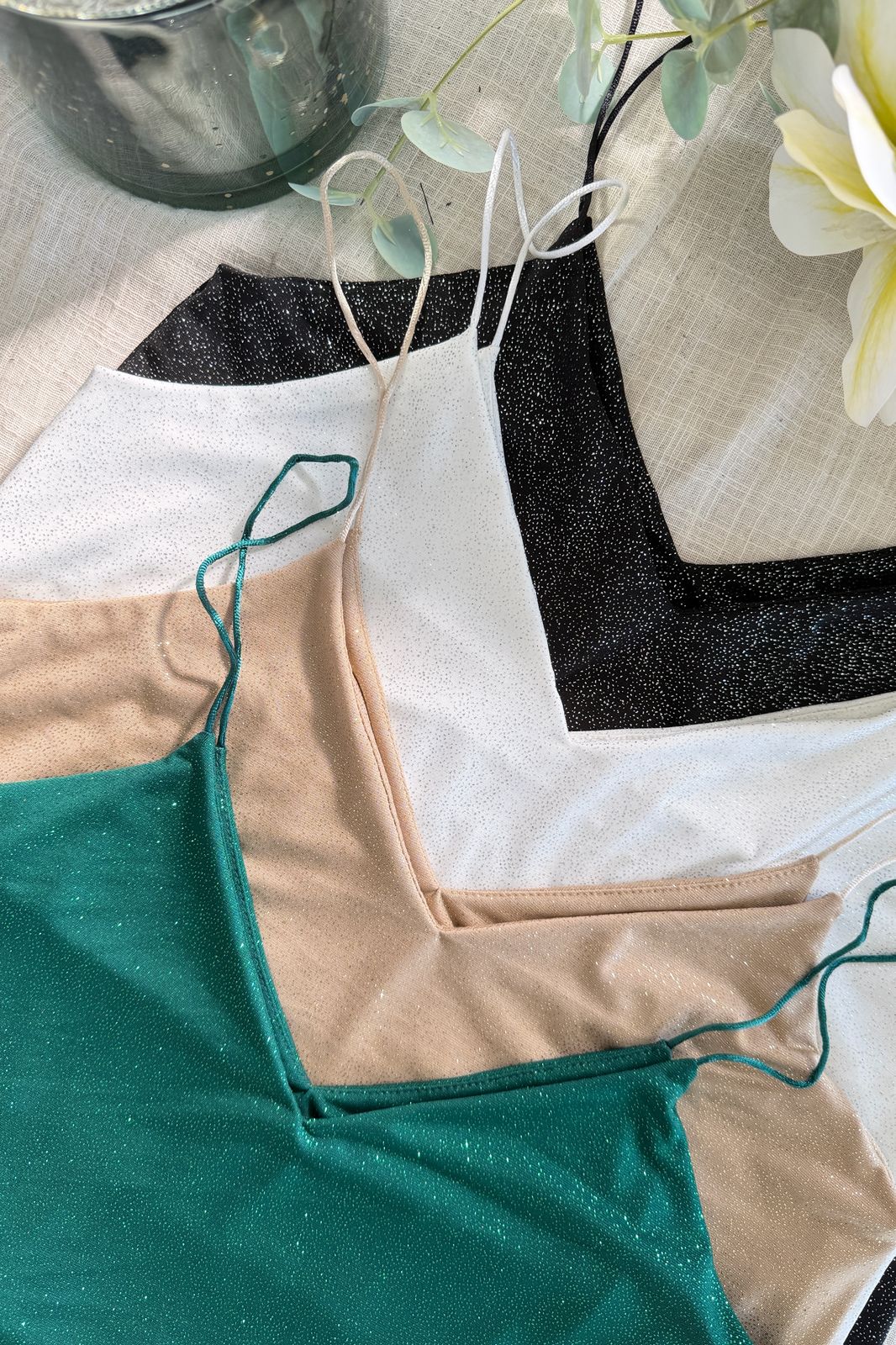 #Musculosita #bretel finito de raso al tono #escote V #microfibra glitter #TALLE UNICO