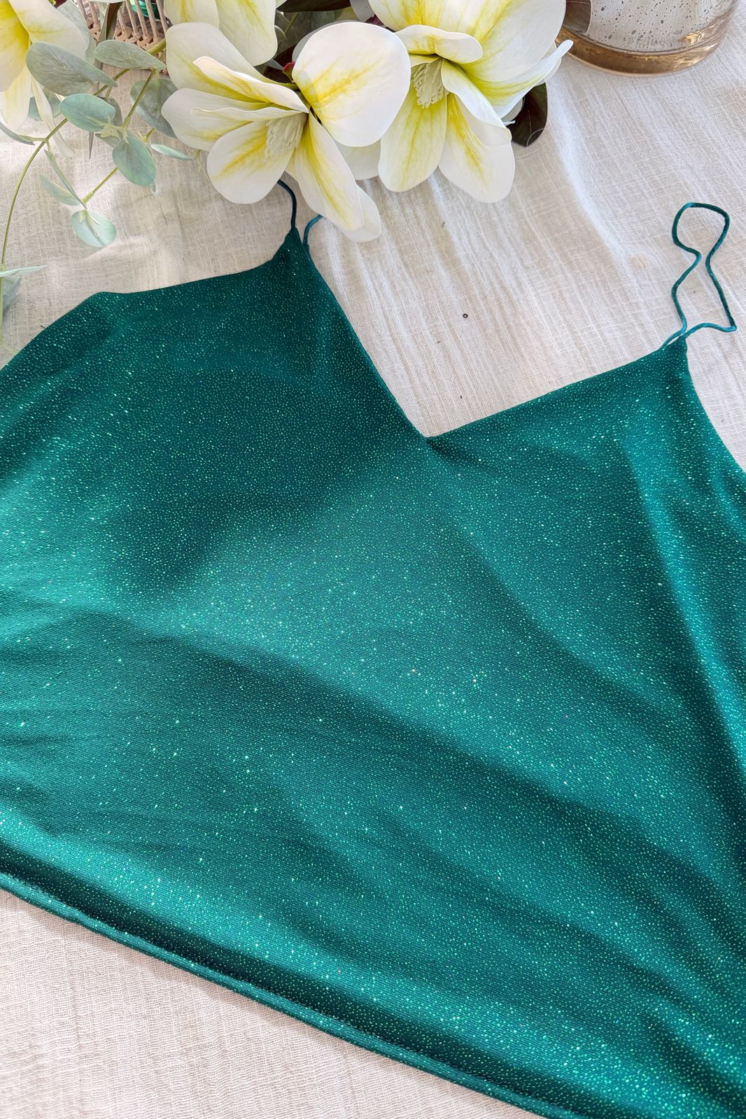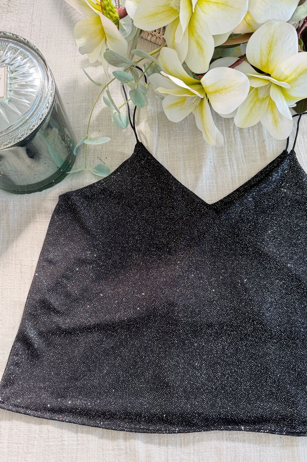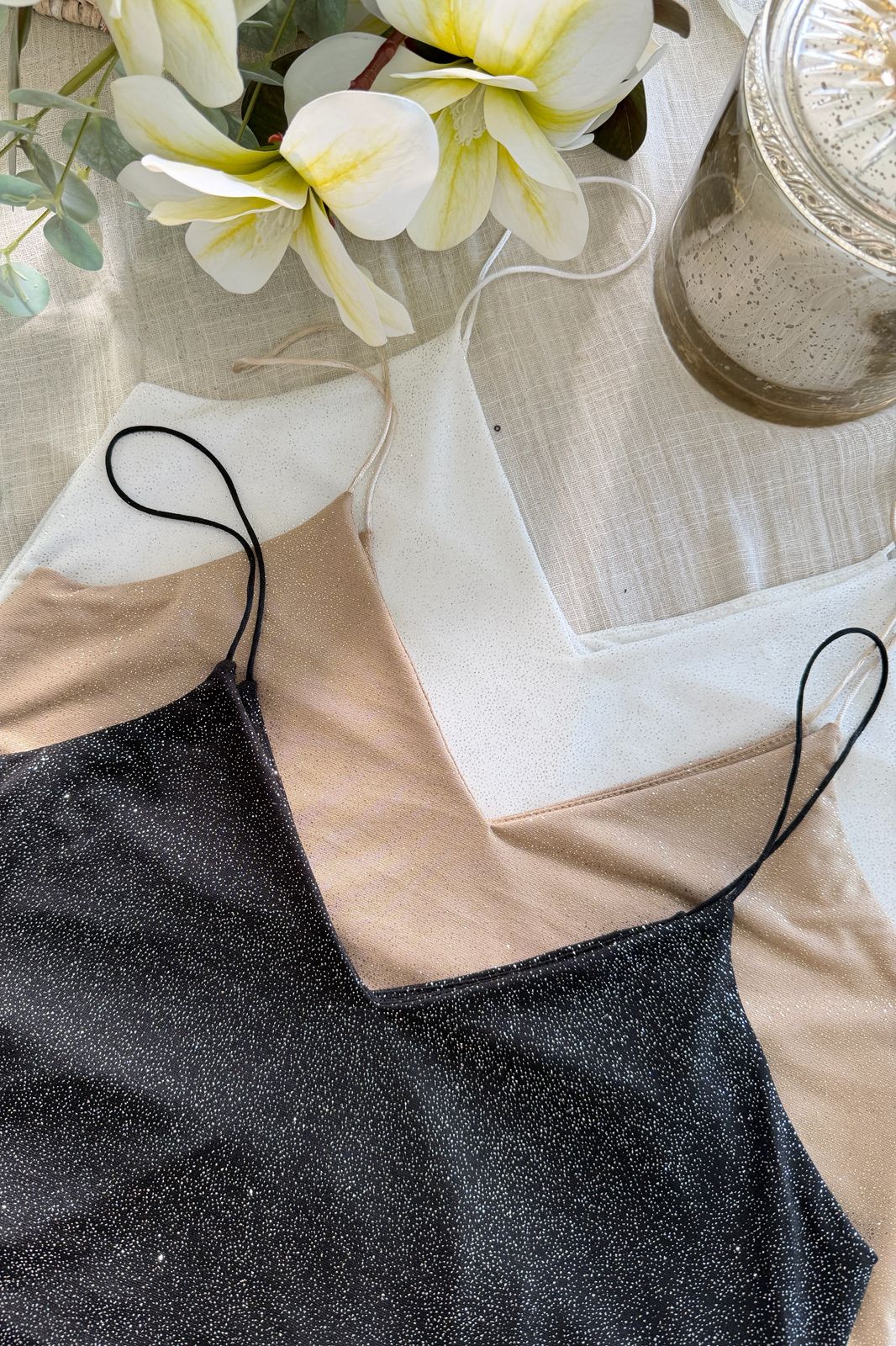 #Musculosita #bretel finito de raso al tono #escote V #microfibra glitter #TALLE UNICO