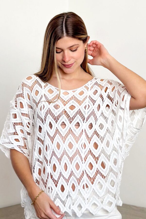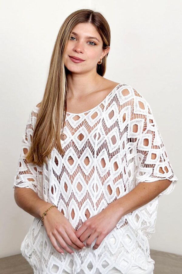 #Blusa #manga corta #escote V #crochet #TALLE UNICO