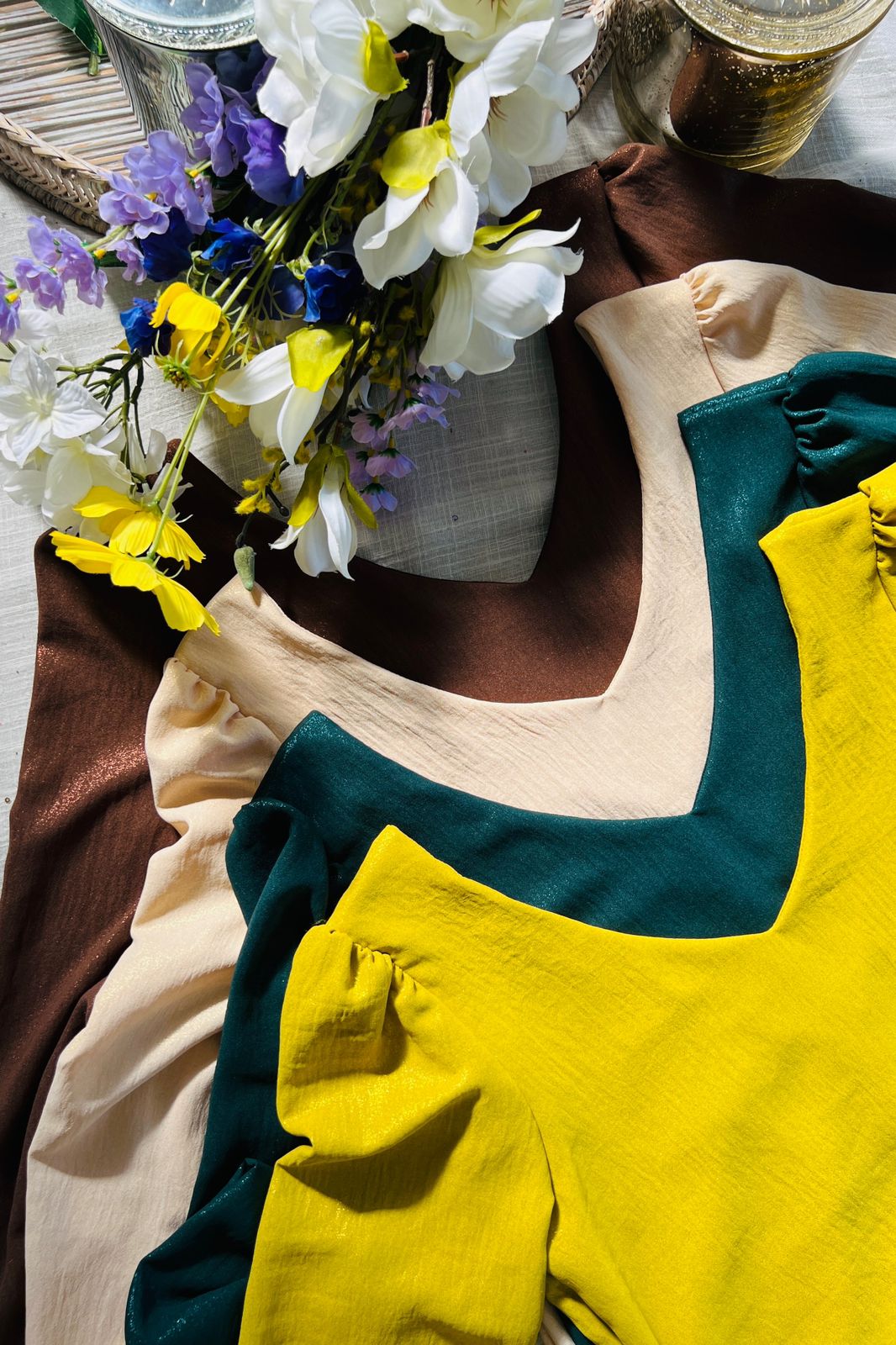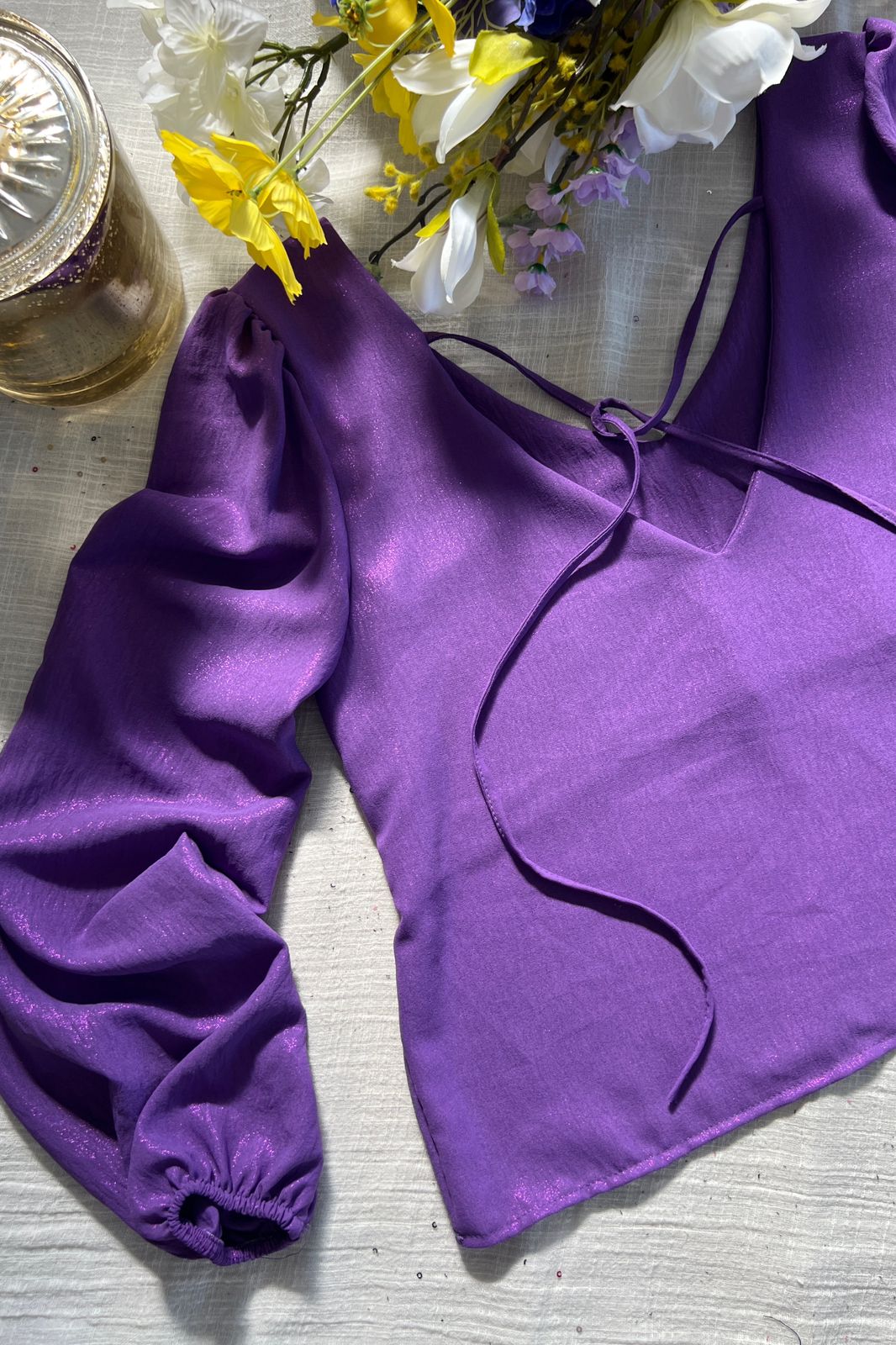 #Blusa #doble escote V #volado en manga #crep cey brilloso #TALLE UNICO