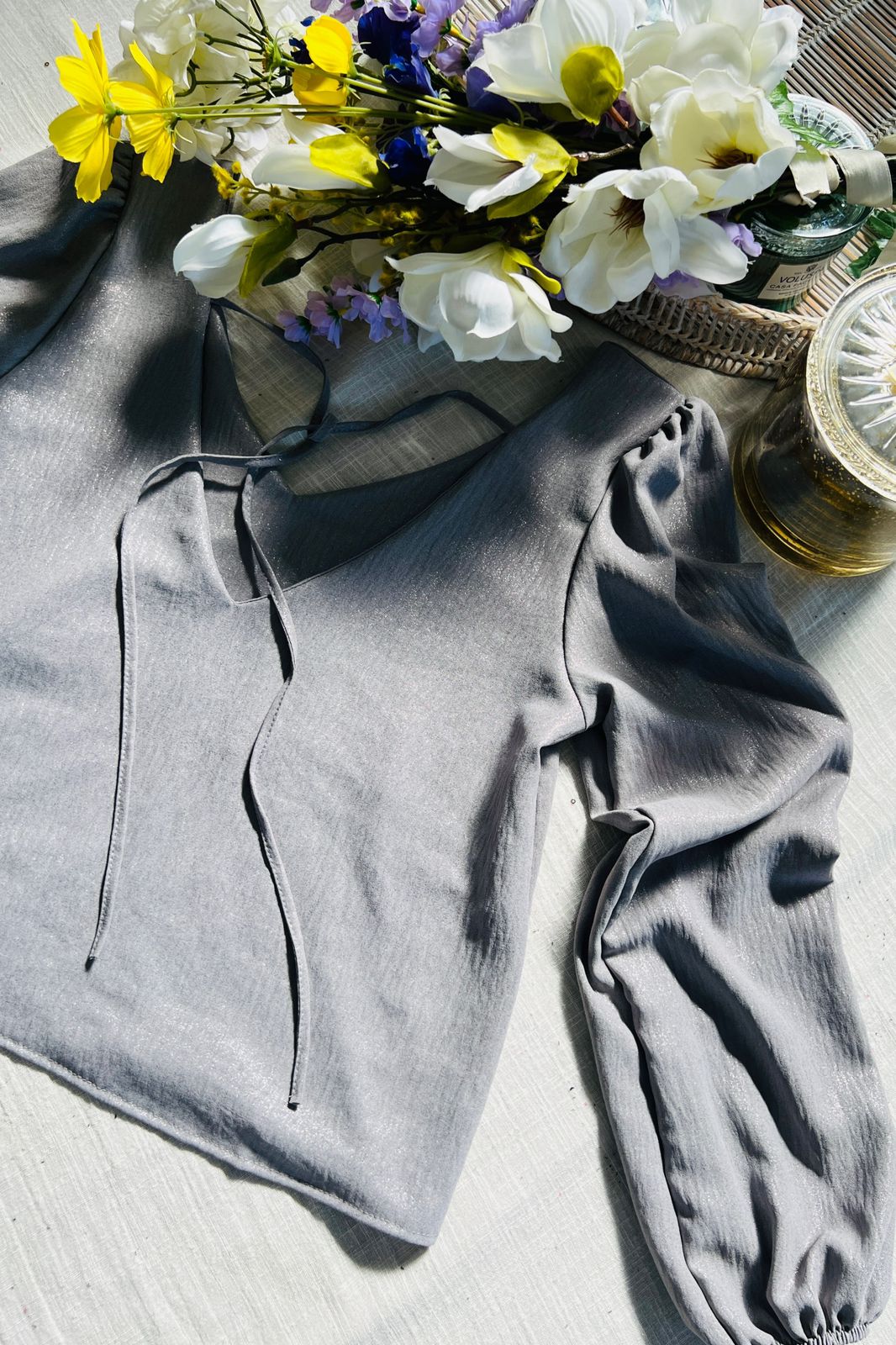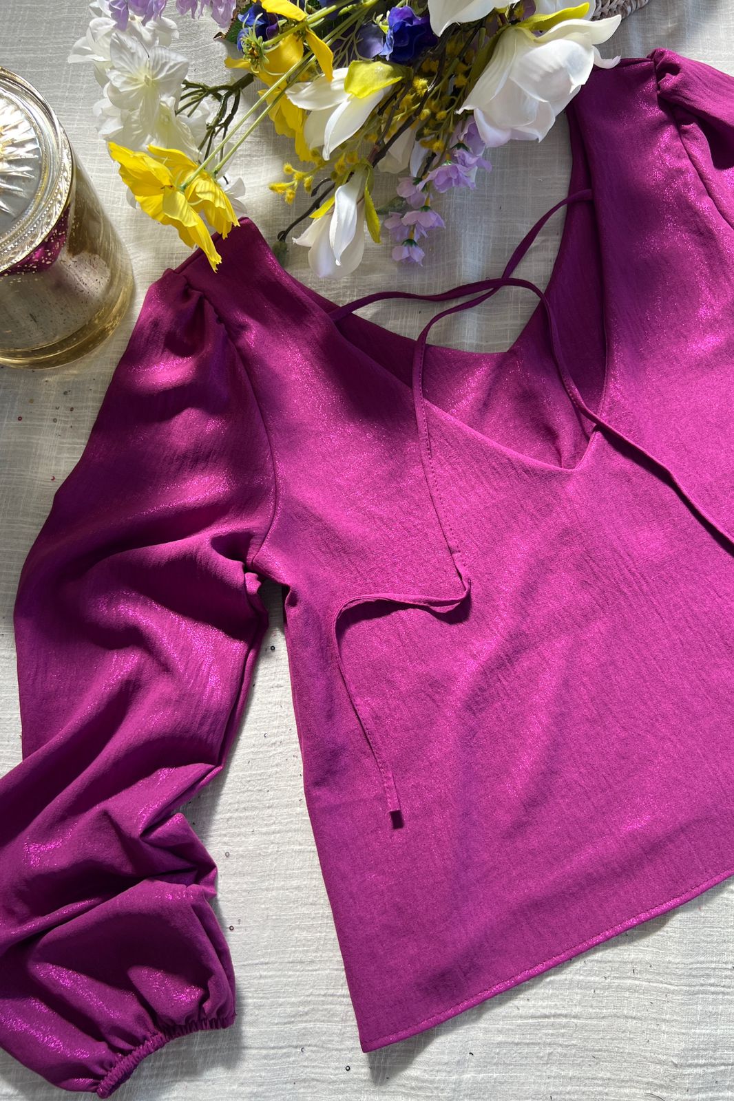 #Blusa #manga larga #globo #escote V en delantera y espalda #con tirita larga para ajustar en espalda #crep cey brilloso #TALLE UNICO #TALLE M/L
