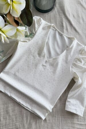 #Blusa #manga corta #abierto en la espalda #pailettes #TALLE UNICO