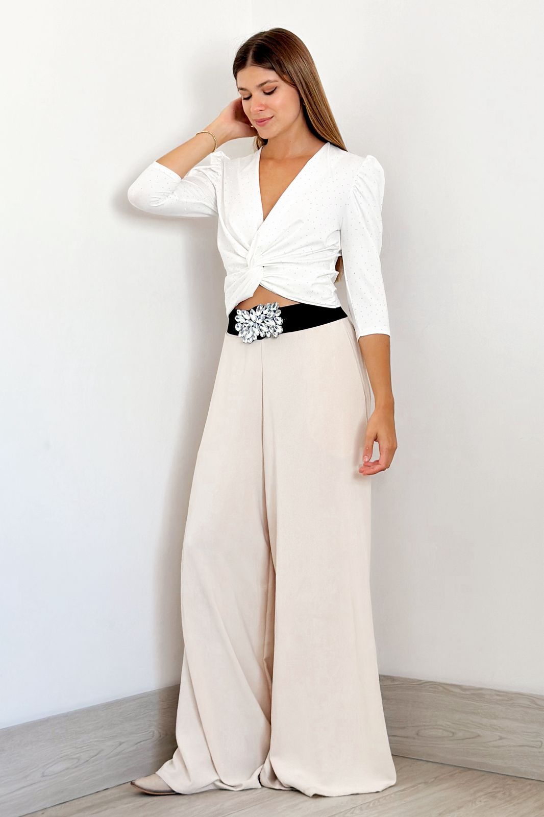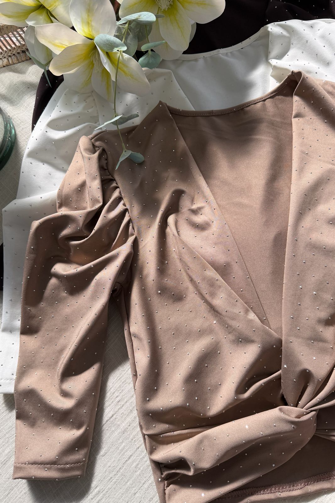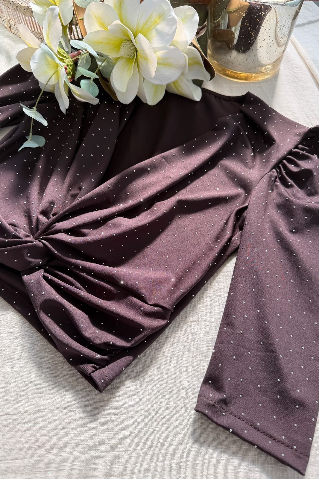 #Remera #microfibra strass #cruzado en delantera #manga 3/4 #manga princesa #TALLE UNICO
