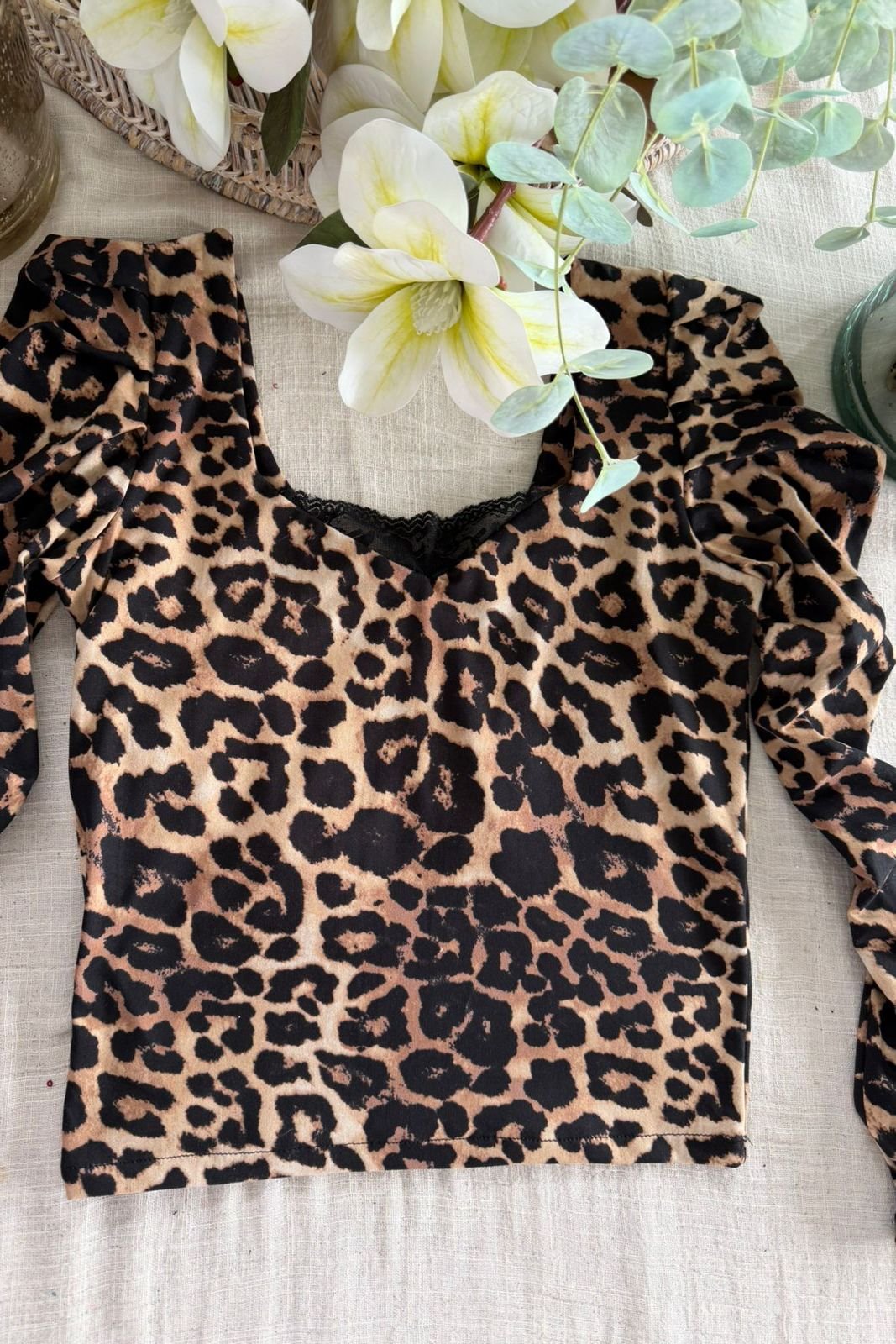 #Remera #modal soft #escote reversible #microfibra animal print #detalle de puntilla en escote #manga larga princesa #TALLE UNICO