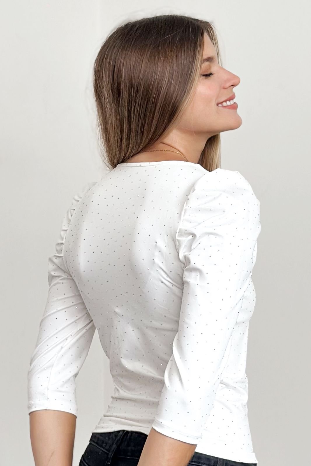 #Remera #microfibra hotifx #escote V #fit al cuerpo #manga 3/4 fruncido en hombros #TALLE UNICO