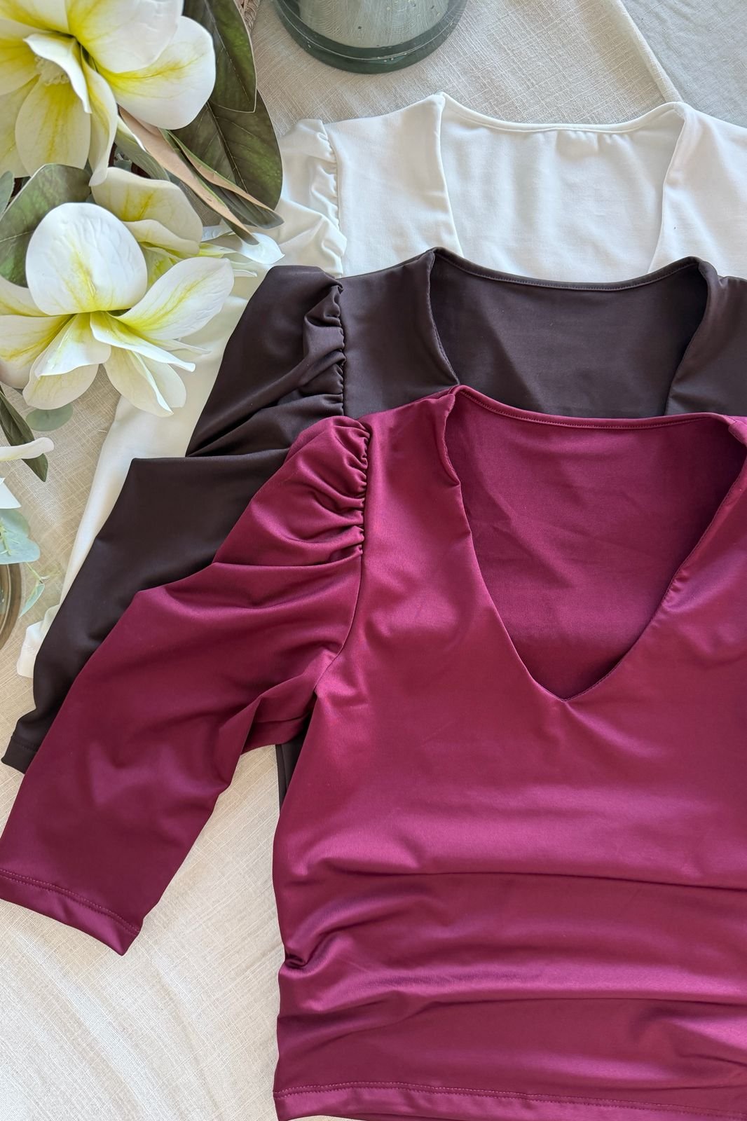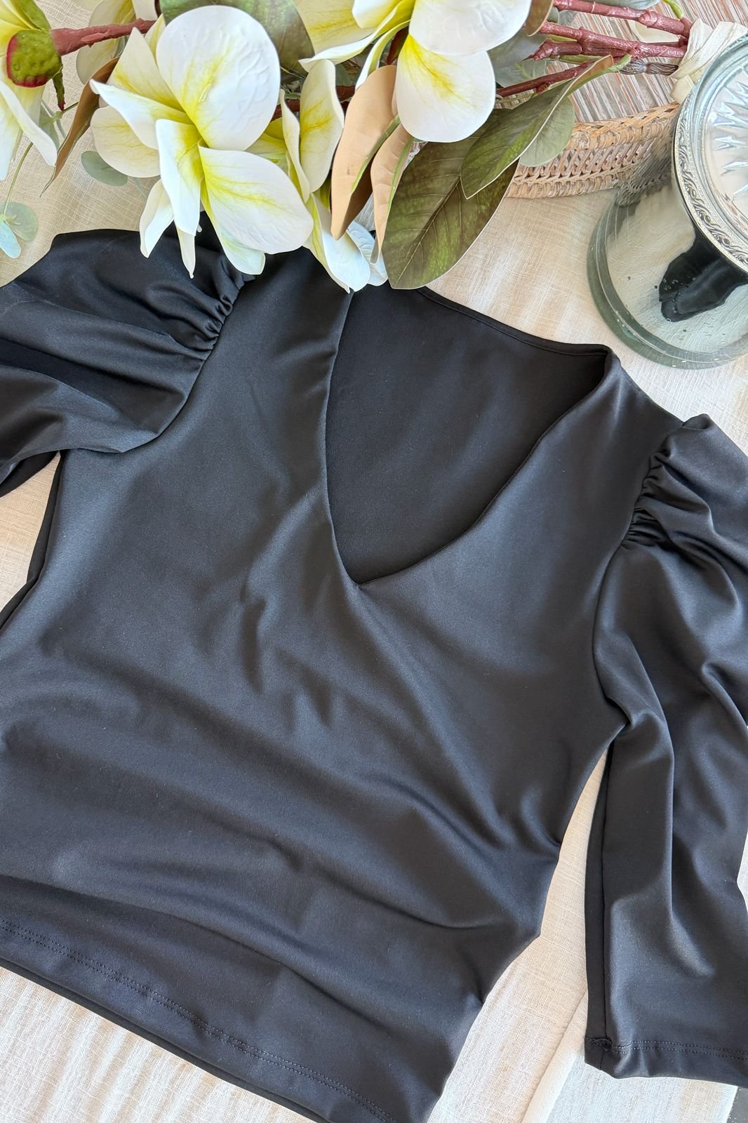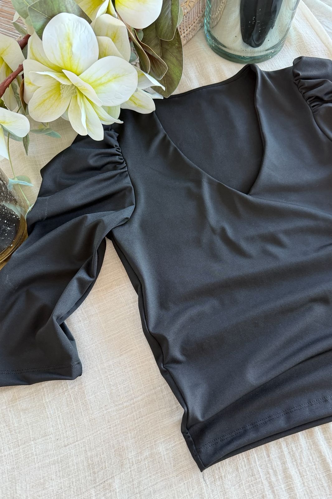 #Remera #microfibra hotifx #escote V #fit al cuerpo #manga 3/4 fruncido en hombros #TALLE UNICO