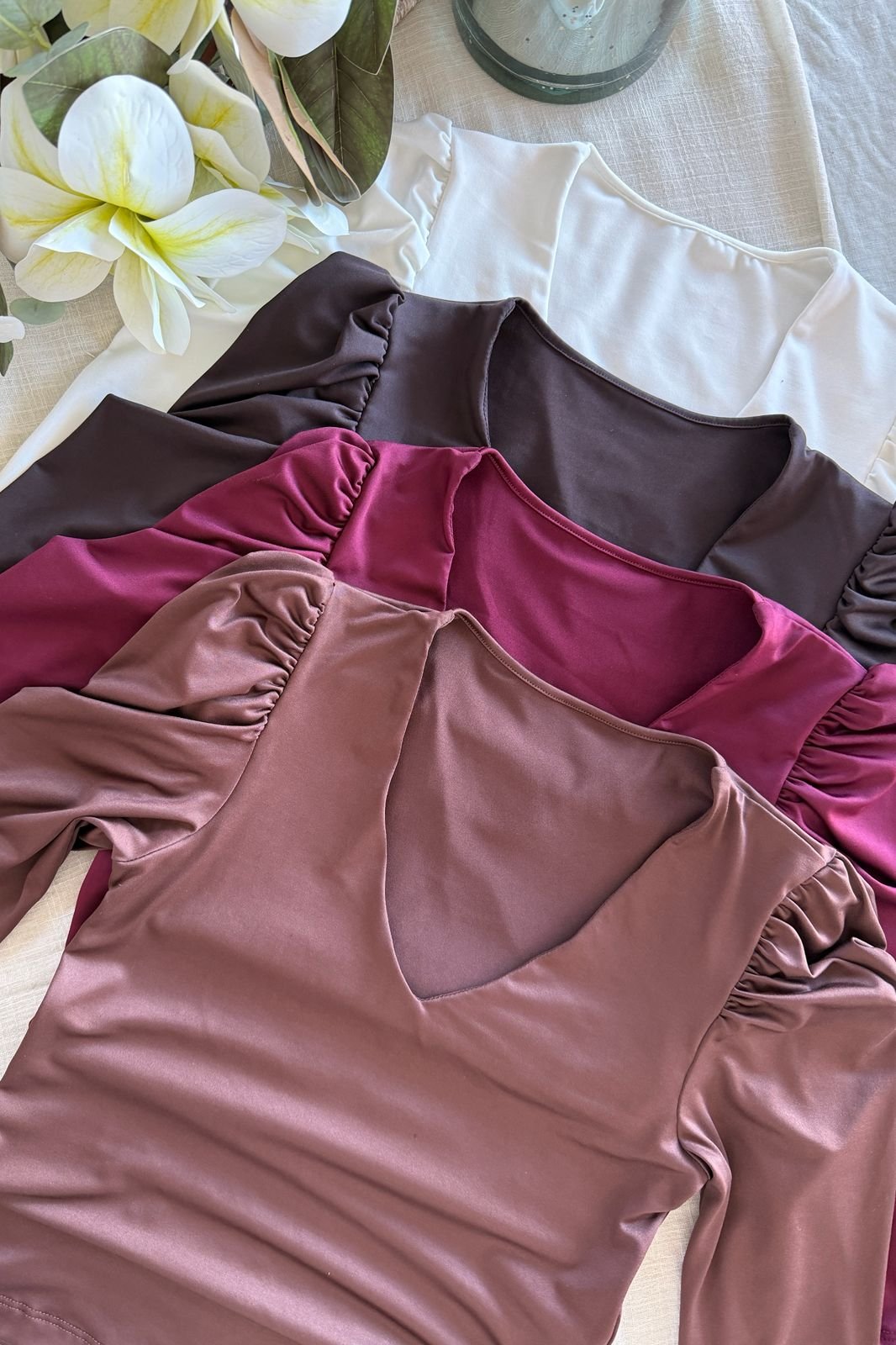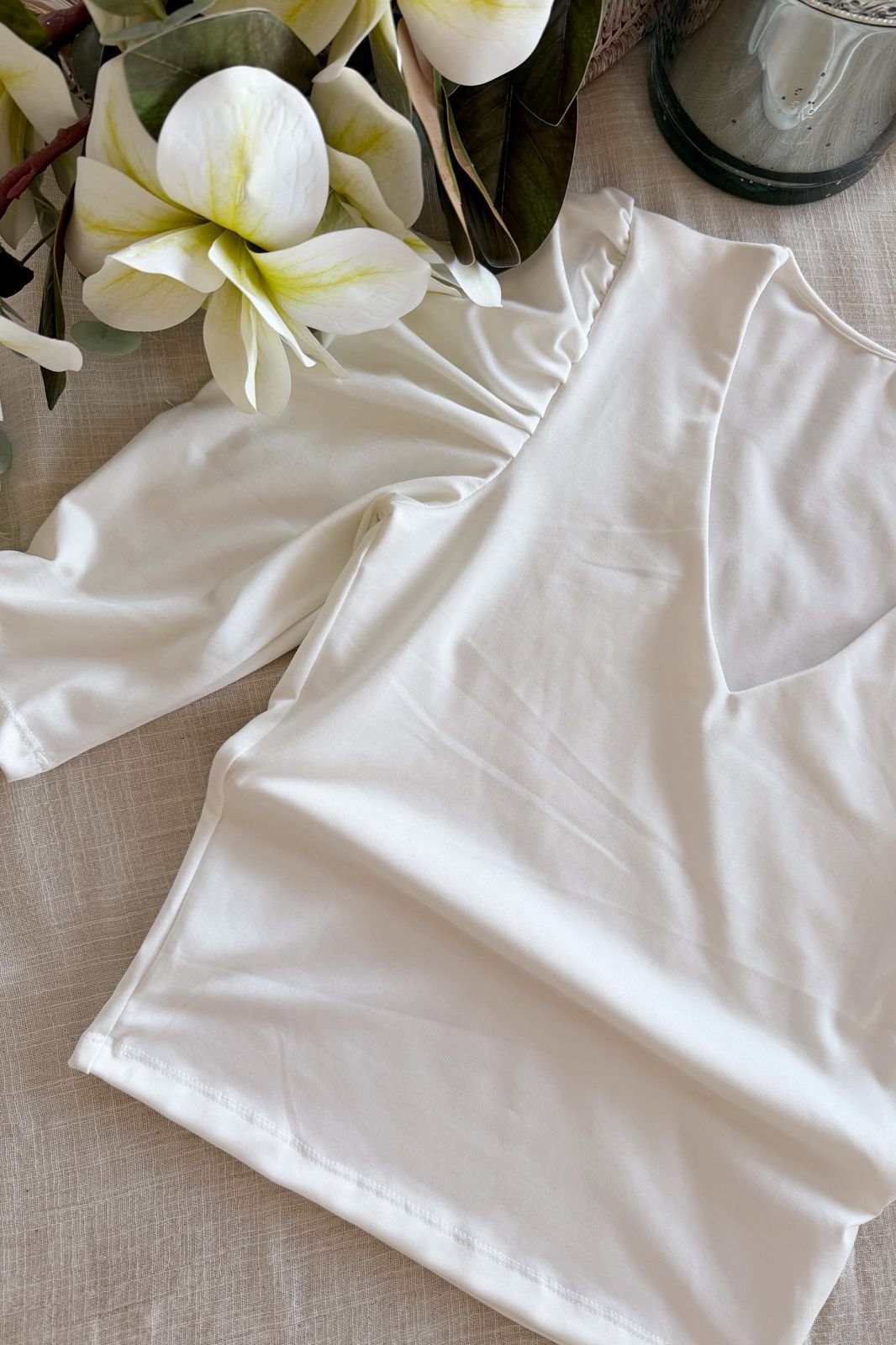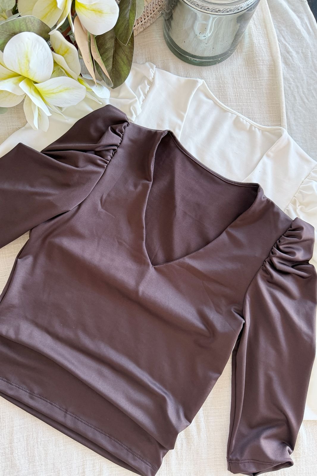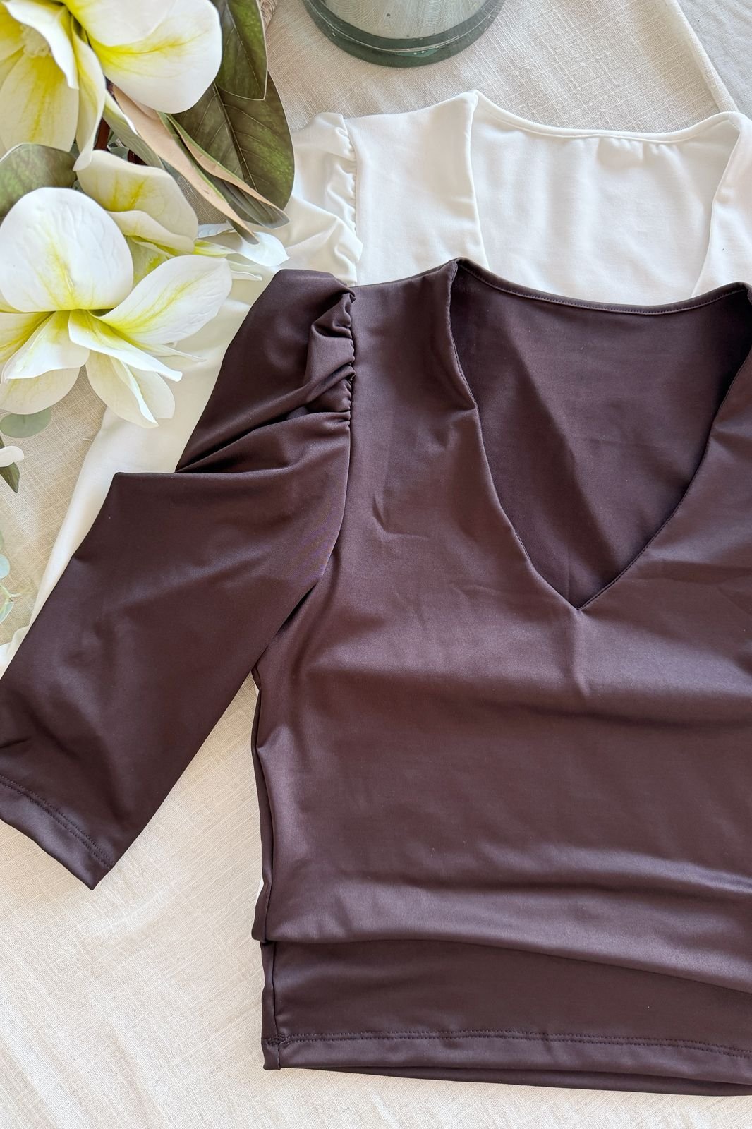 #Remera #microfibra hotifx #escote V #fit al cuerpo #manga 3/4 fruncido en hombros #TALLE UNICO