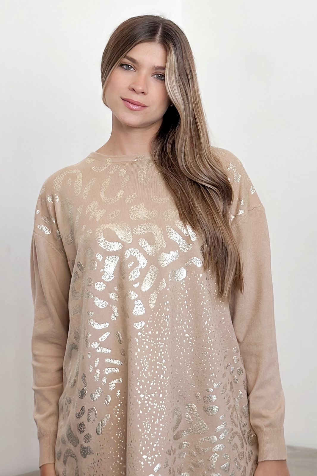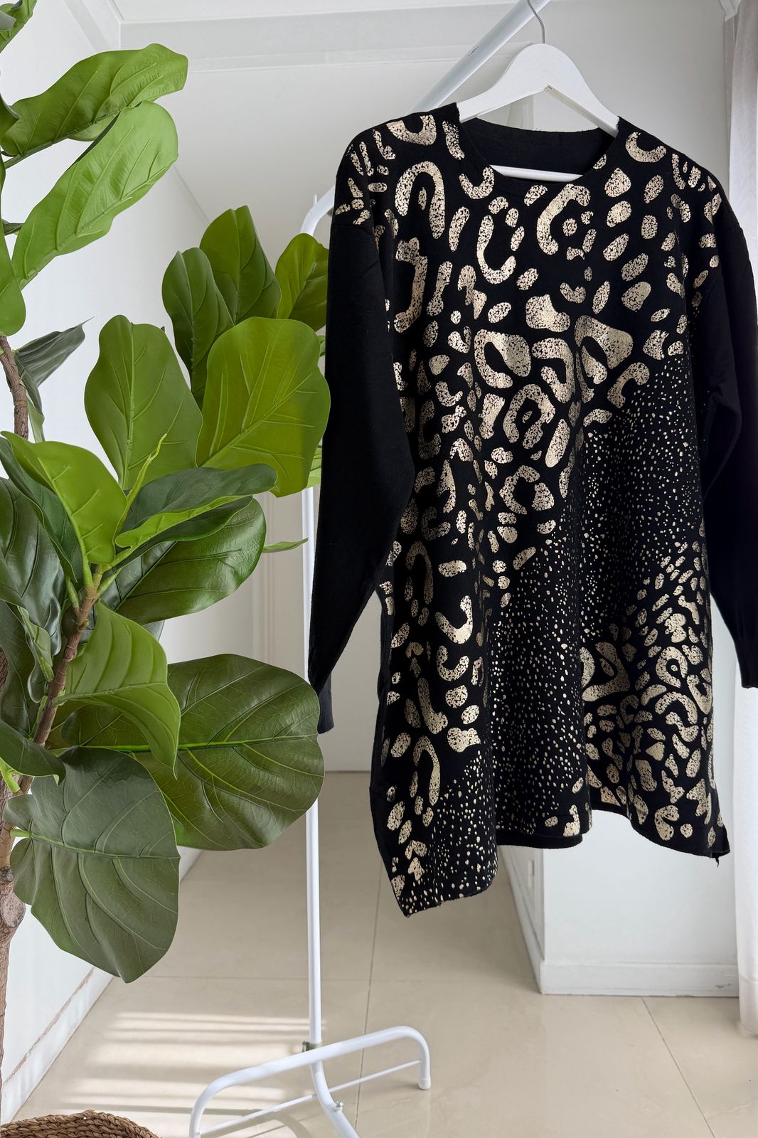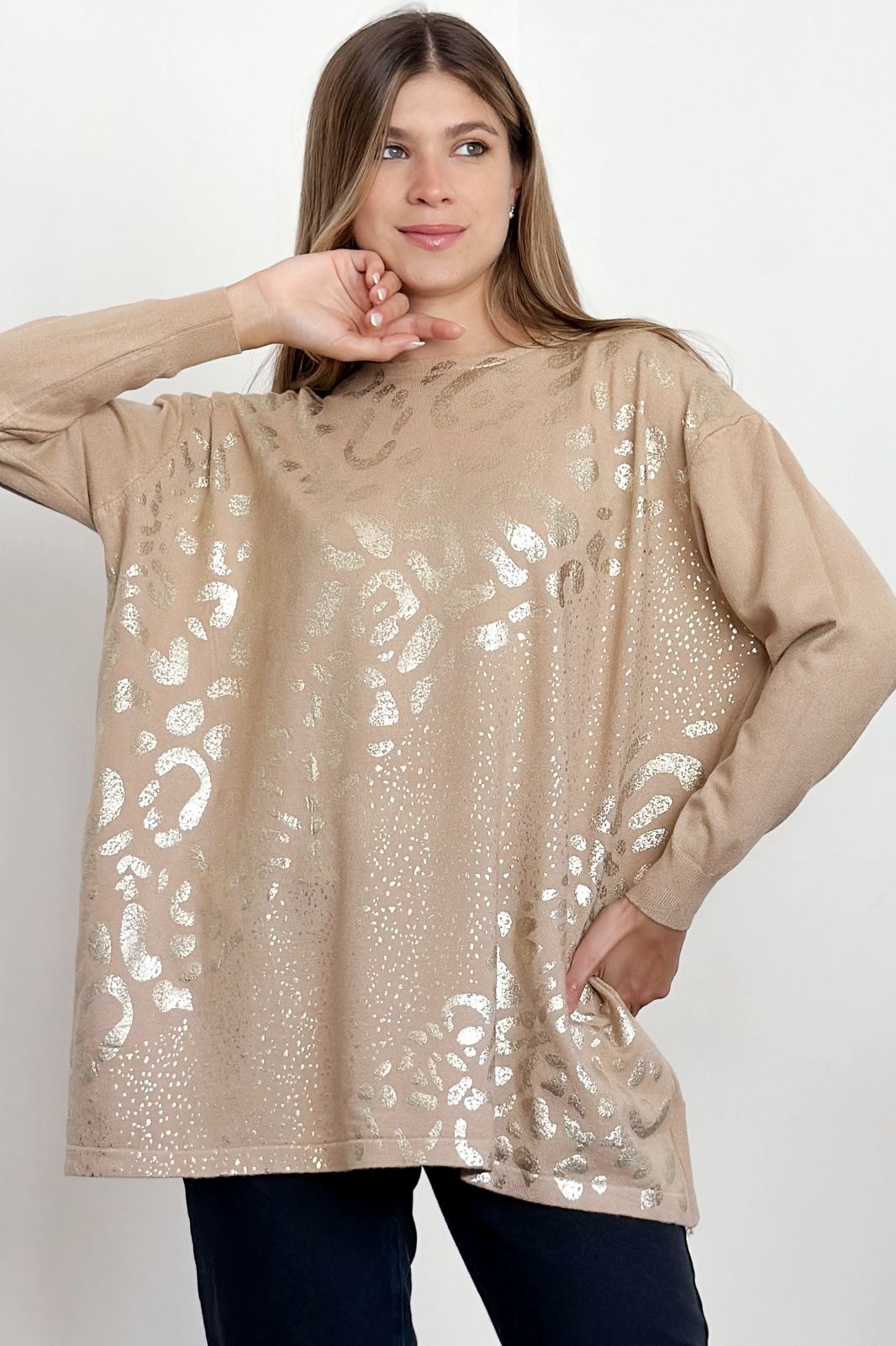 #sweater #fit amplio #lycra viscosa #estampa motivo animal print en oro #TALLE UNICO