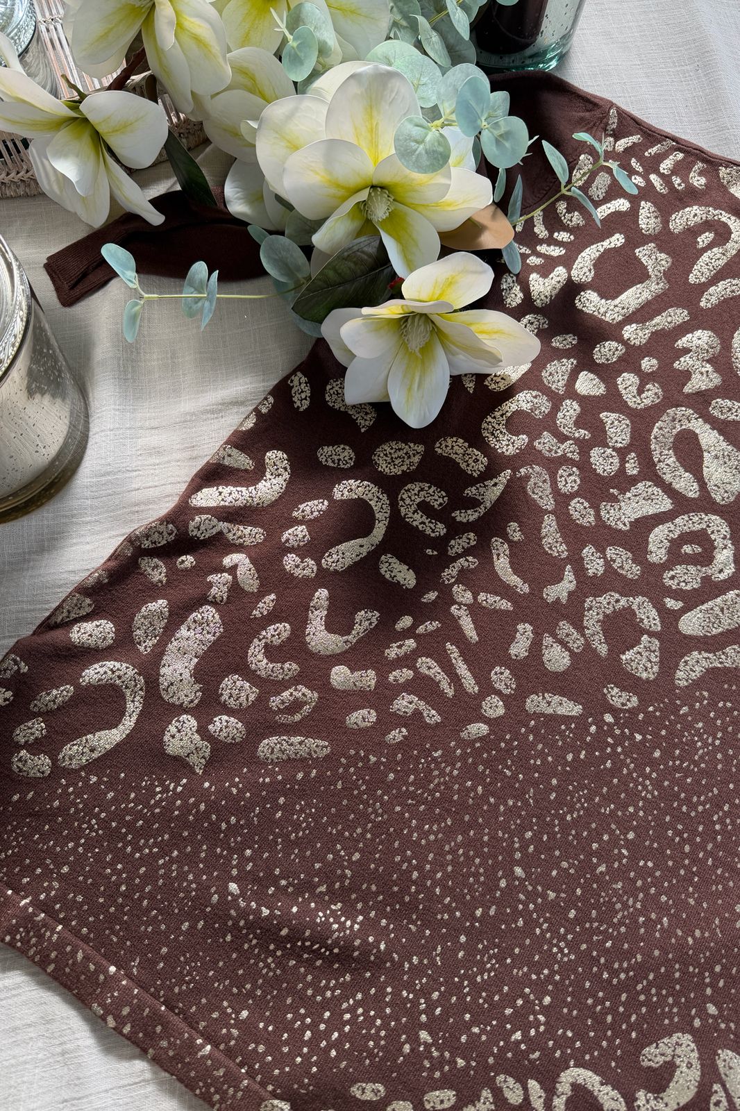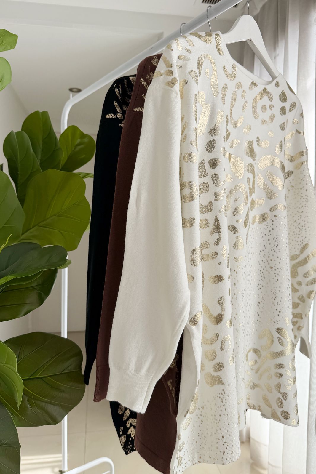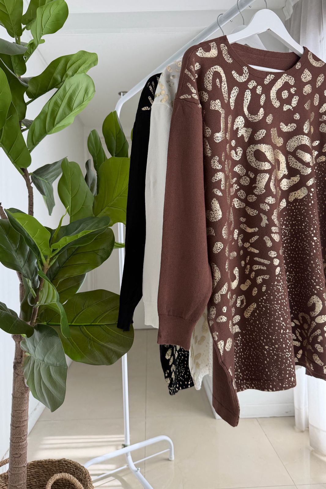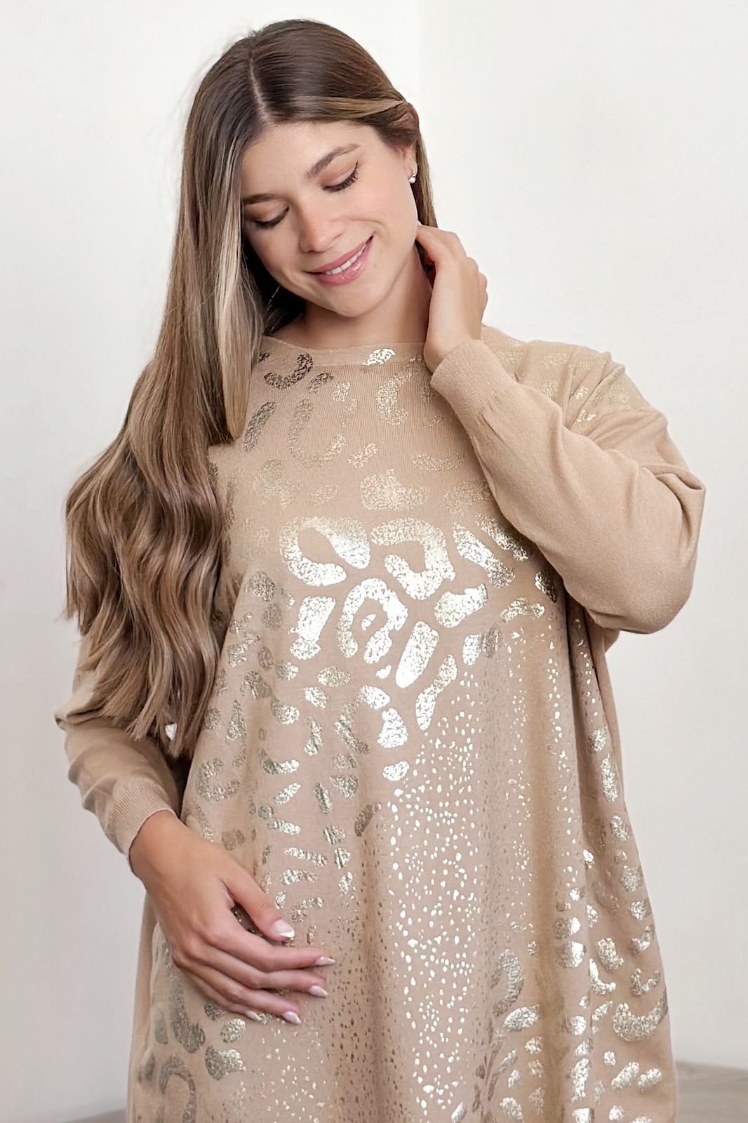 #sweater #fit amplio #lycra viscosa #estampa motivo animal print en oro #TALLE UNICO