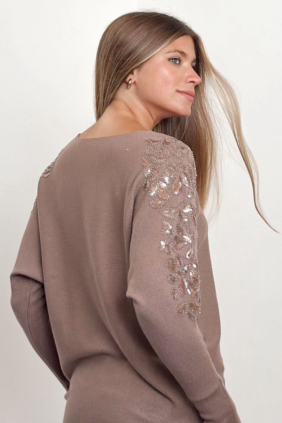 #Sweater #manga murcielago #oversize #lycra viscosa #bordado en lentejuelas y canutillos en hombro y mangas al tono #TALLE UNICO