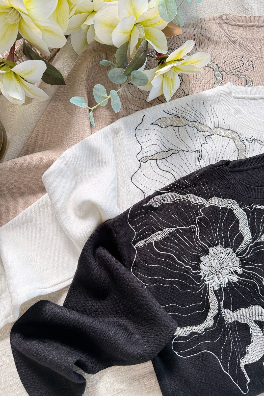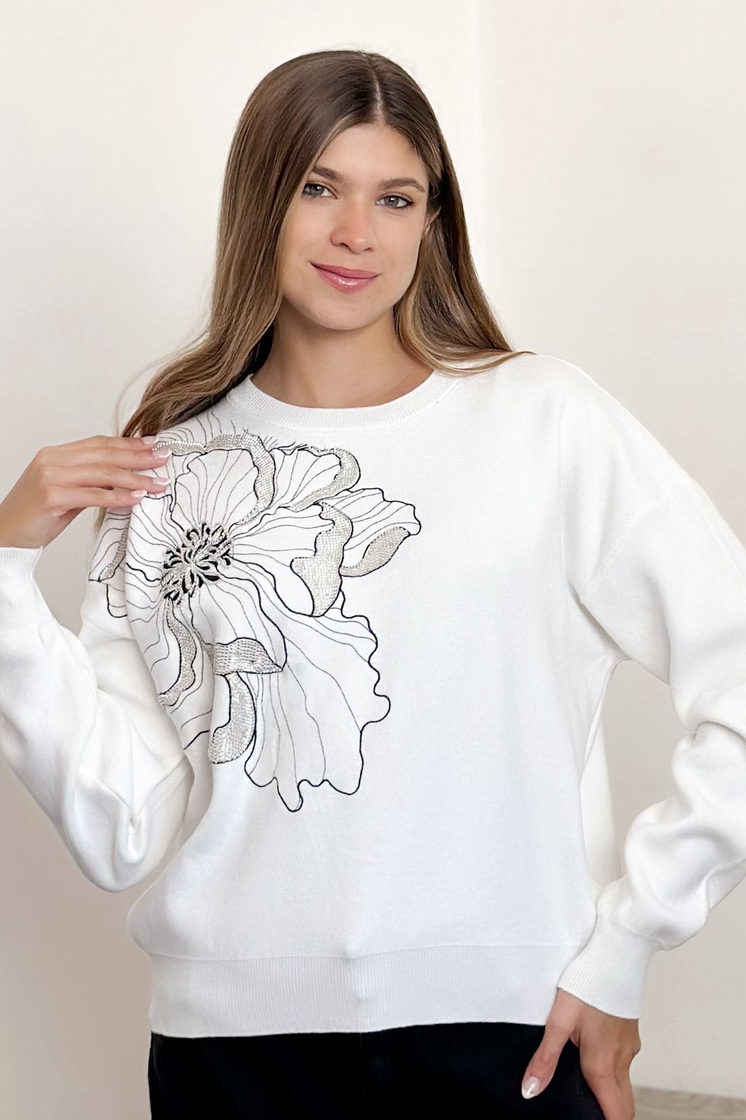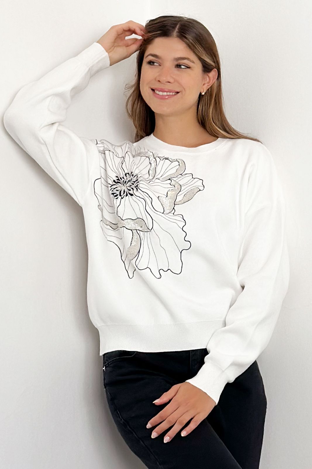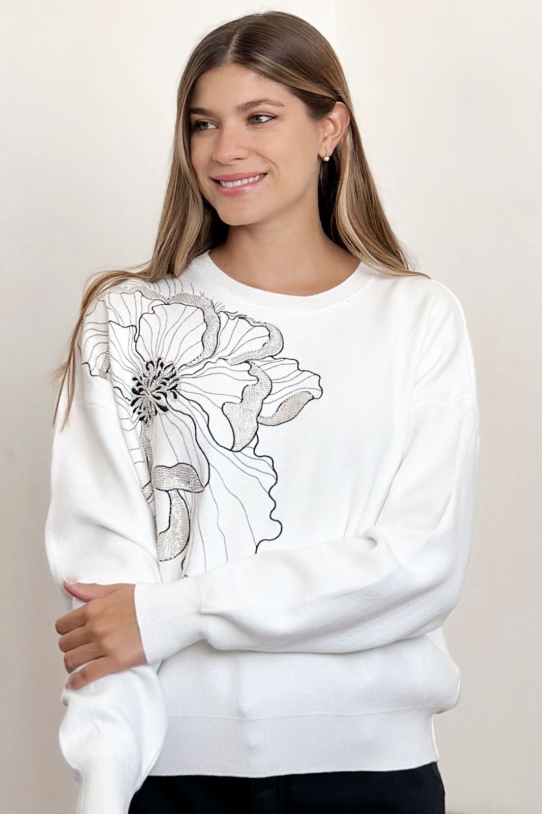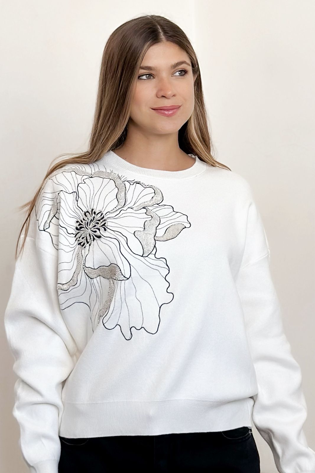 #sweater #lycra viscosa #bordado floral #detalles en canutillos #TALLE UNICO