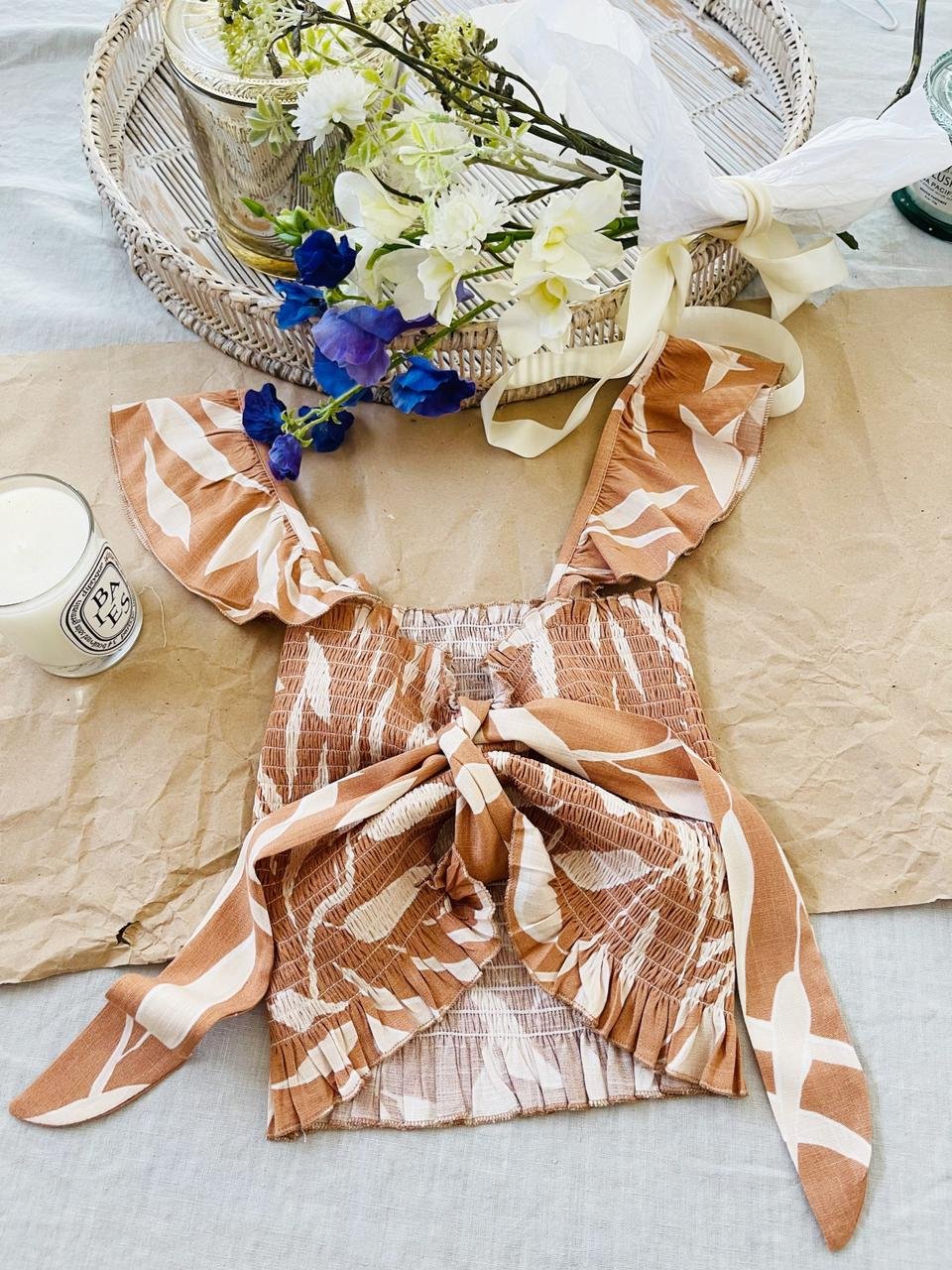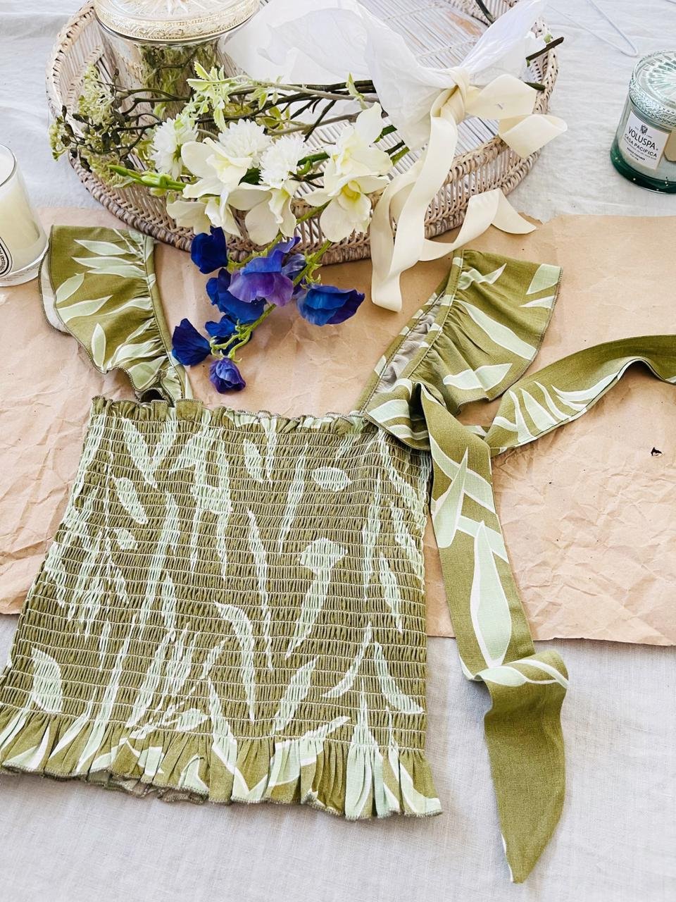 #Top #Elastizado #Lino Estampado Eucalipto #Para Atar #TALLE UNICO