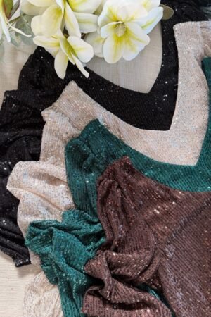 $19,000.00#Blusa #pailettes #manga 3/4 #manga princesa #doble escote V #TALLE UNICO