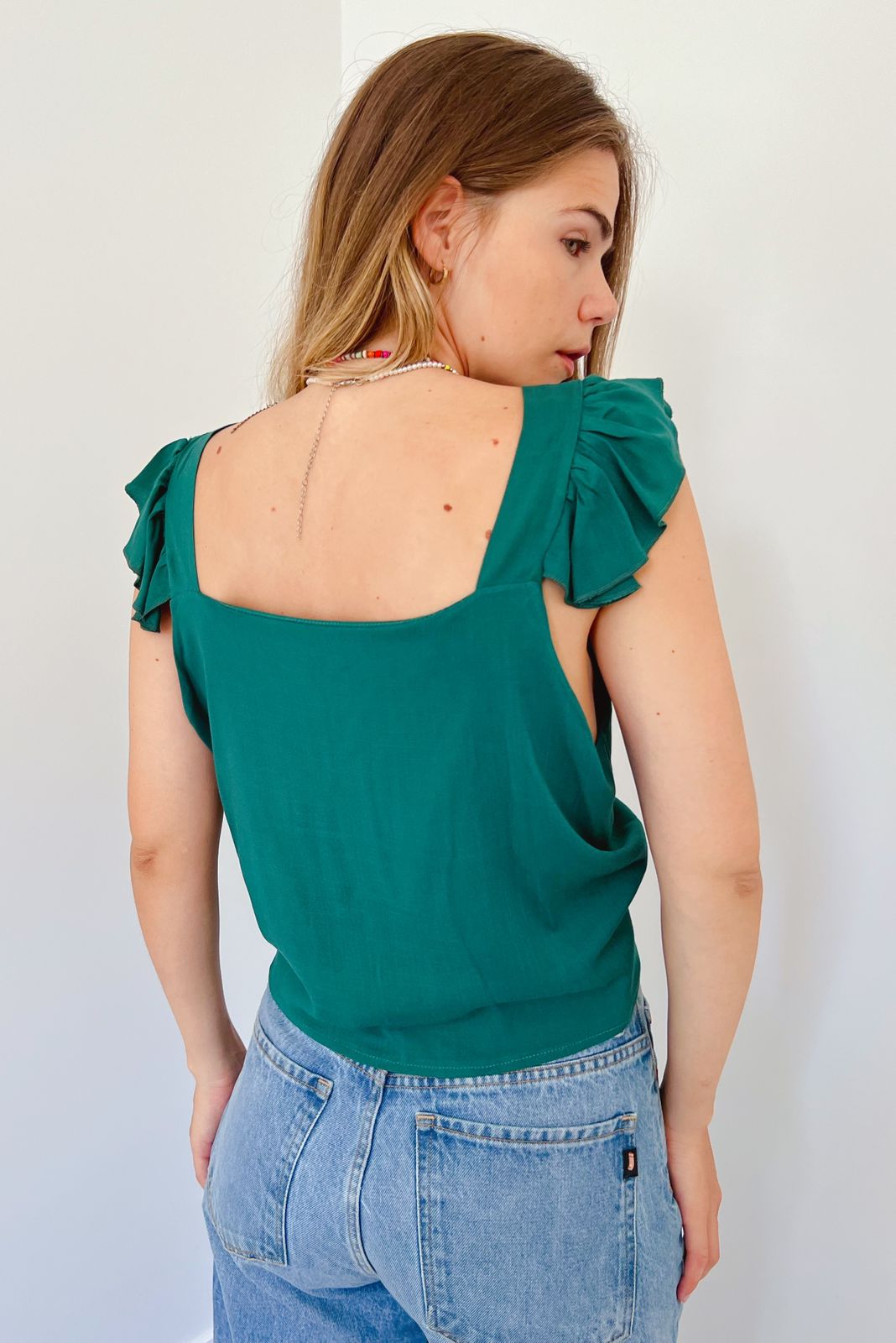#Blusa SIMIL LINO #Escote V #voladitos #encaje #TALLE UNICO