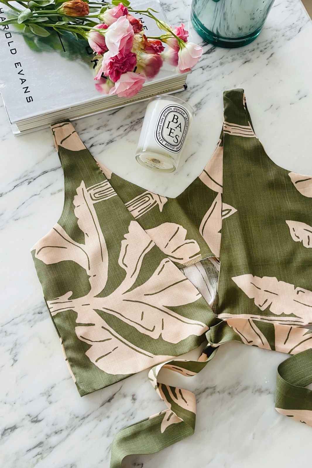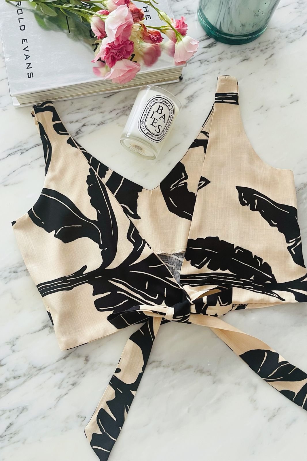 #Top #Simil Lino Estampado #Tulum #Lazo en Espalda #TALLE UNICO