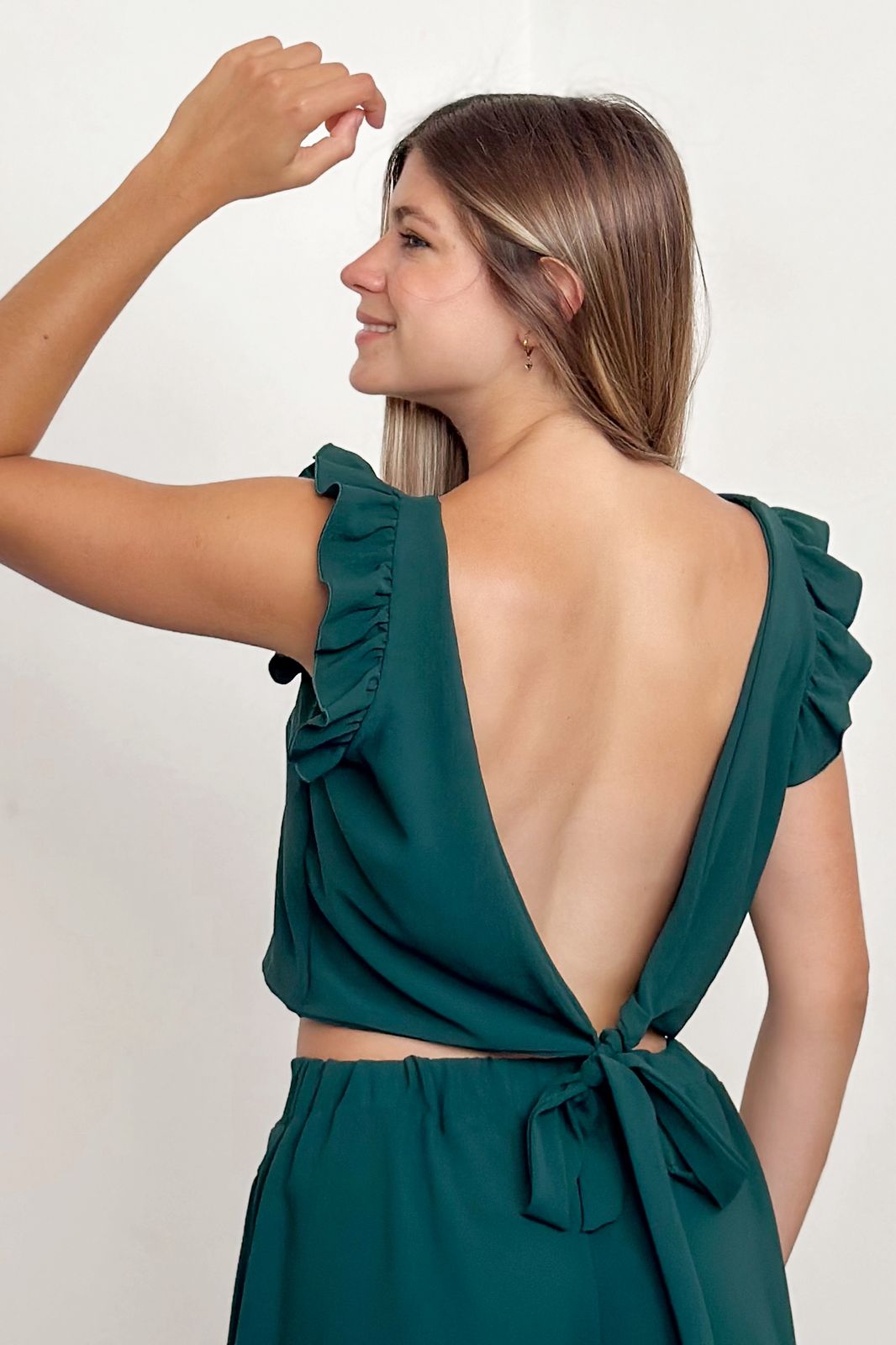 #Top #crep lino #escote V #voladitos #tirita para atar en espalda #TALLE UNICO