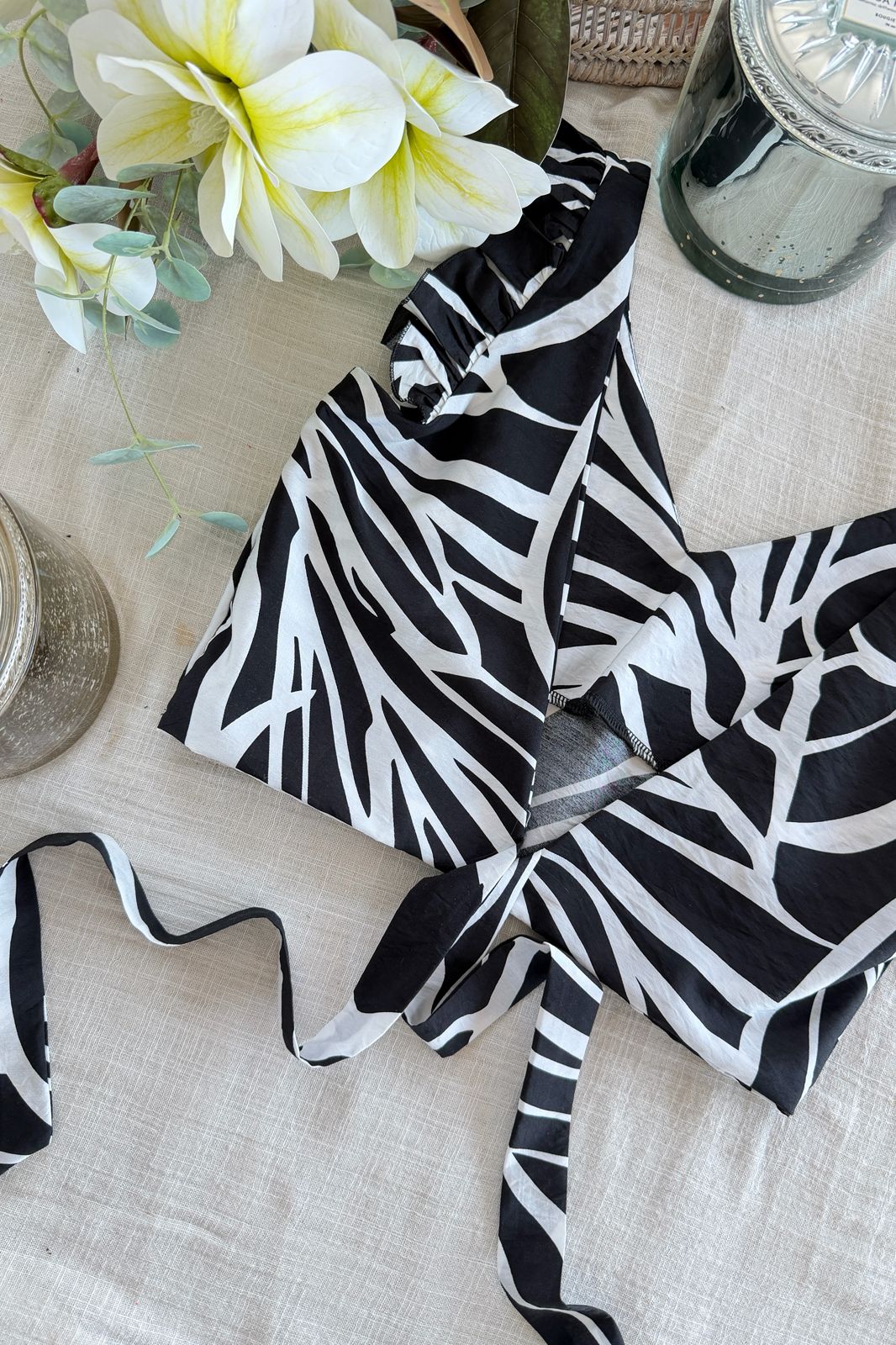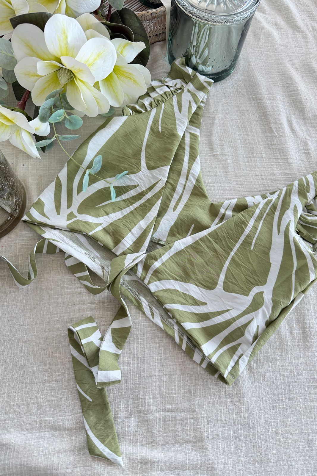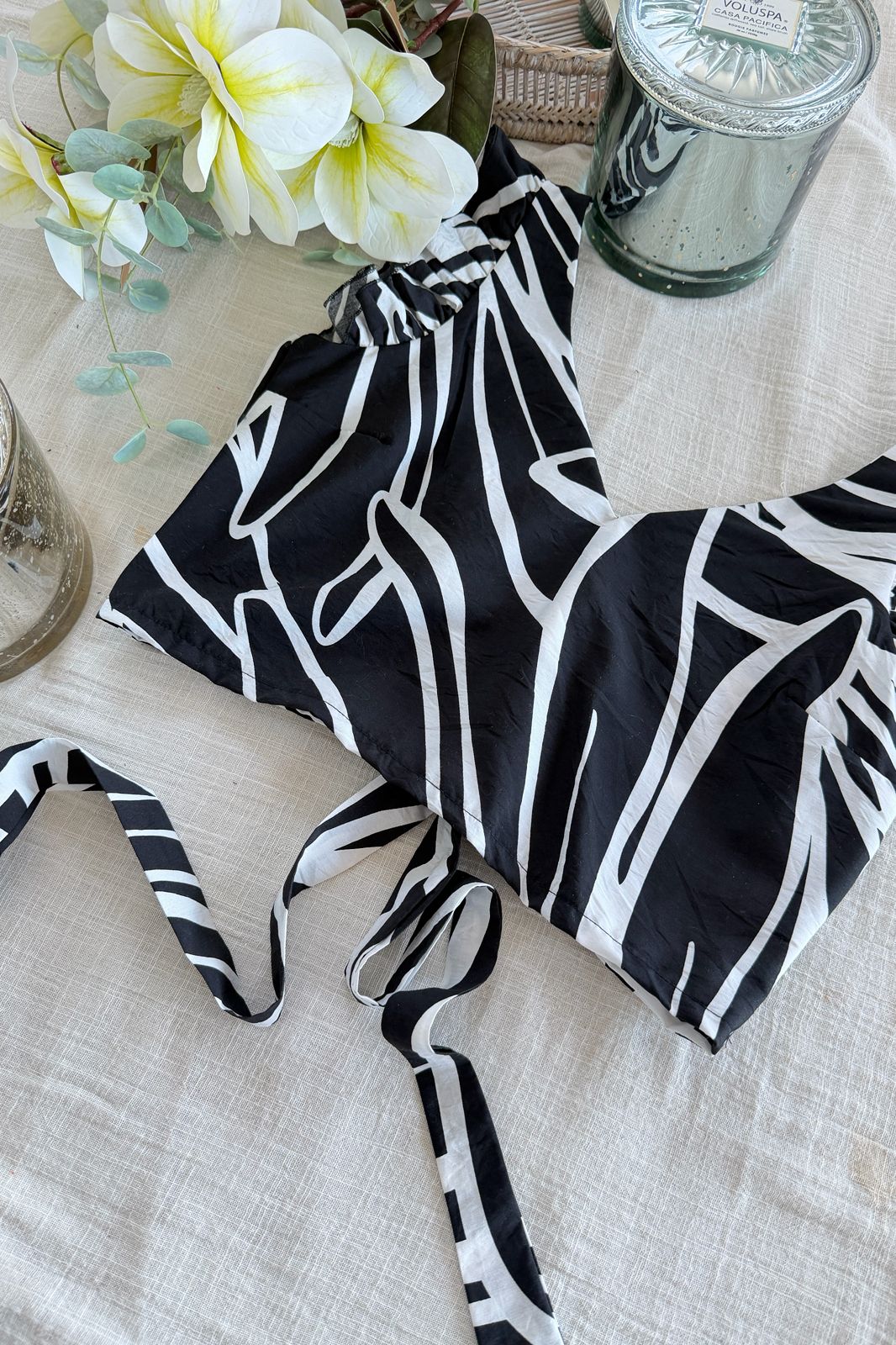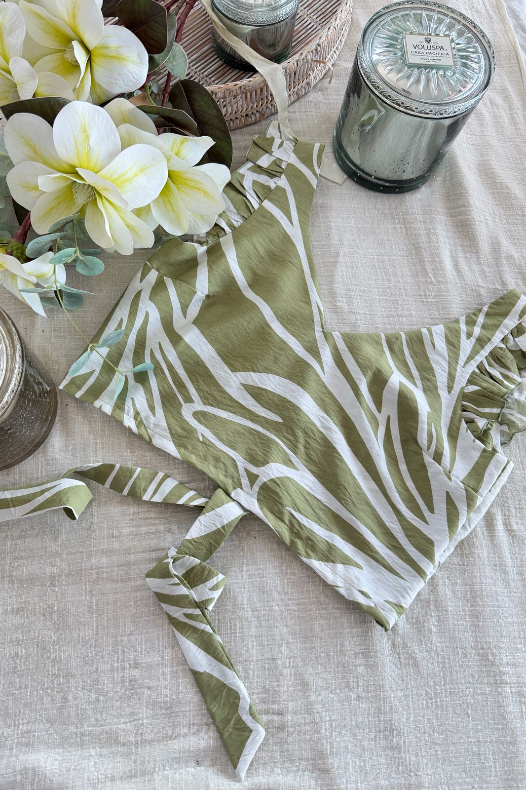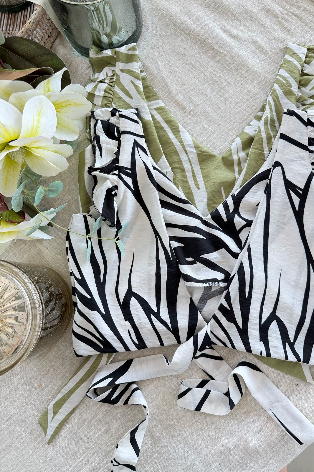 #Top #estapampado #voladitos #escote V #para atar #espalda descubierta #TALLE UNICO