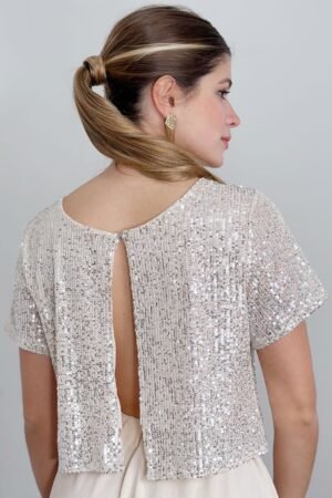 $15,000.00#Blusa #manga corta #abierto en la espalda #pailettes #TALLE UNICO