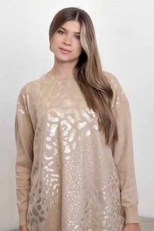 $21,000.00$14,000.00#sweater #fit amplio #lycra viscosa #estampa motivo animal print en oro #TALLE UNICO