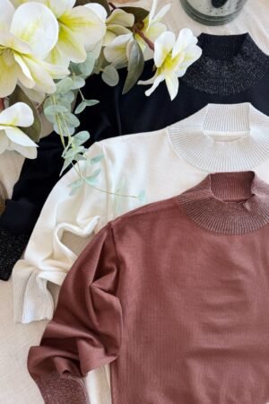 Sweater Boris simil bremer con detalle en lurex en cuello y punos