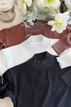 Sweater Boris simil bremer con detalle en lurex en cuello y punos