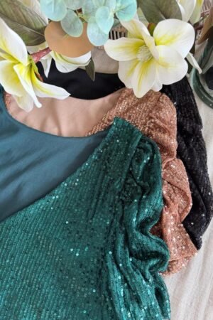 $17,000.00#Blusa #pailettes #escote reversible #manga corta #manga princesa #TALLE UNICO