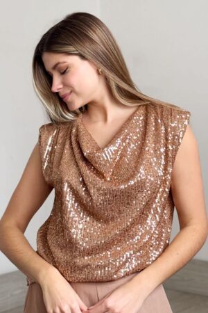 Blusa Diane microfibra glitter sin manga