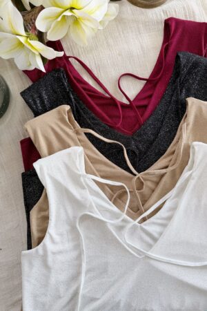 #Blusa #cuello buche #musculosa #para atar #microfibra glitter #TALLE UNICO