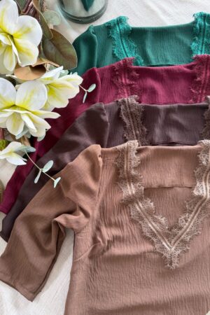 #Blusa #crep lino #escote V #manga 3/4 #detalle en puntilla en el escote #TALLE UNICO